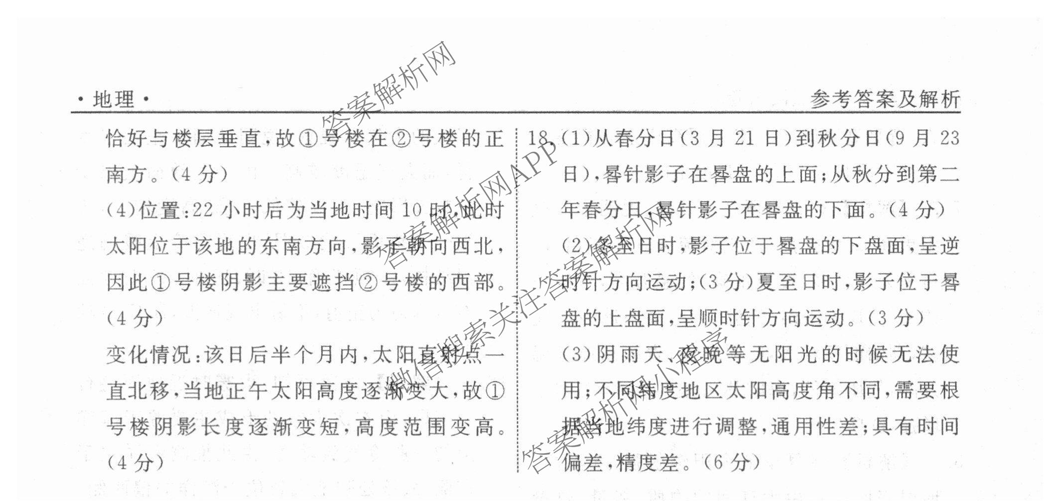 衡水名师卷2025-2026学年度高三一轮复习考点测试卷(四)4地理(40分钟空心菱形)答案