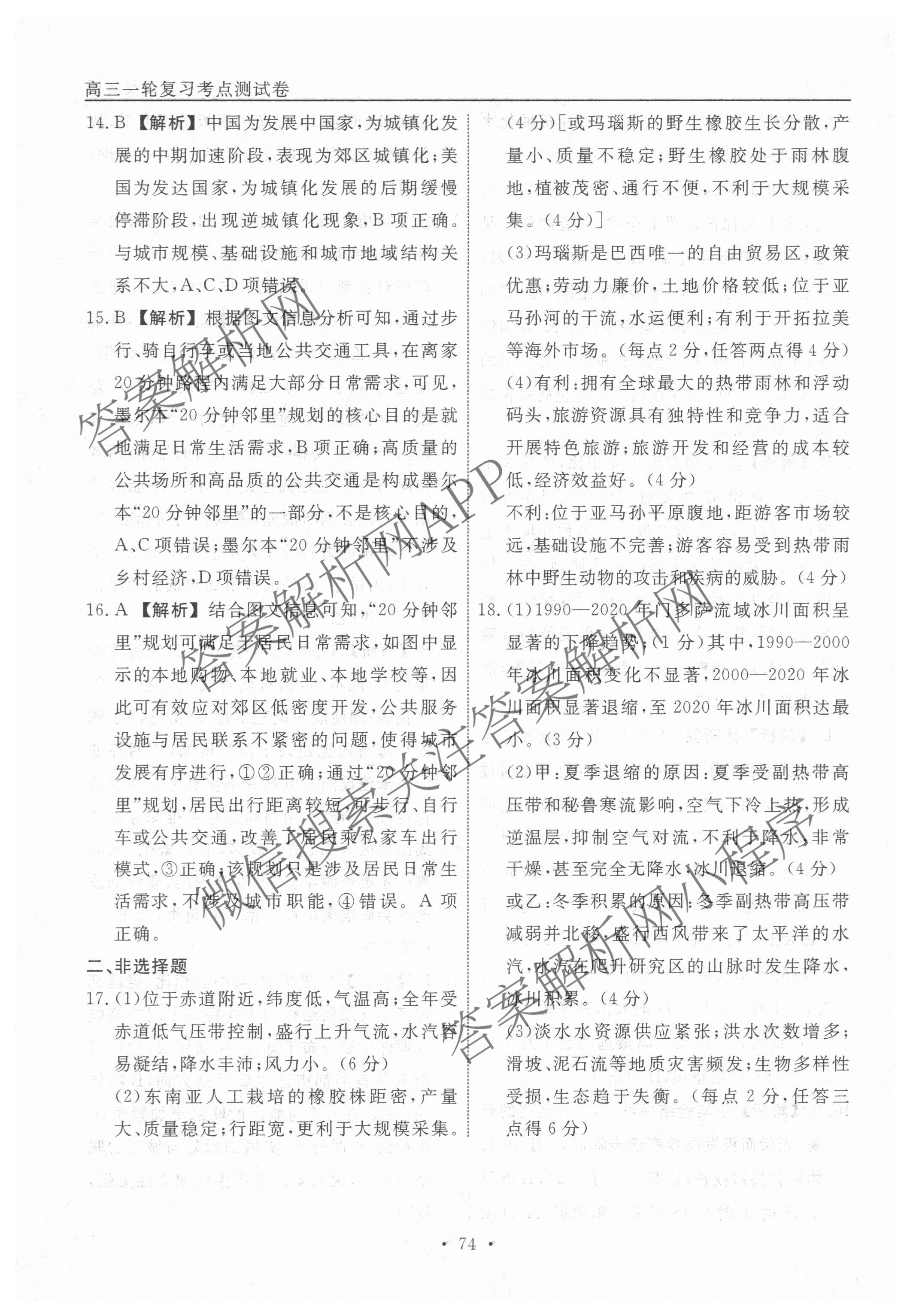 衡水名师卷2025-2026学年度高三一轮复习考点测试卷(三十)30地理(40分钟空心菱形)答案