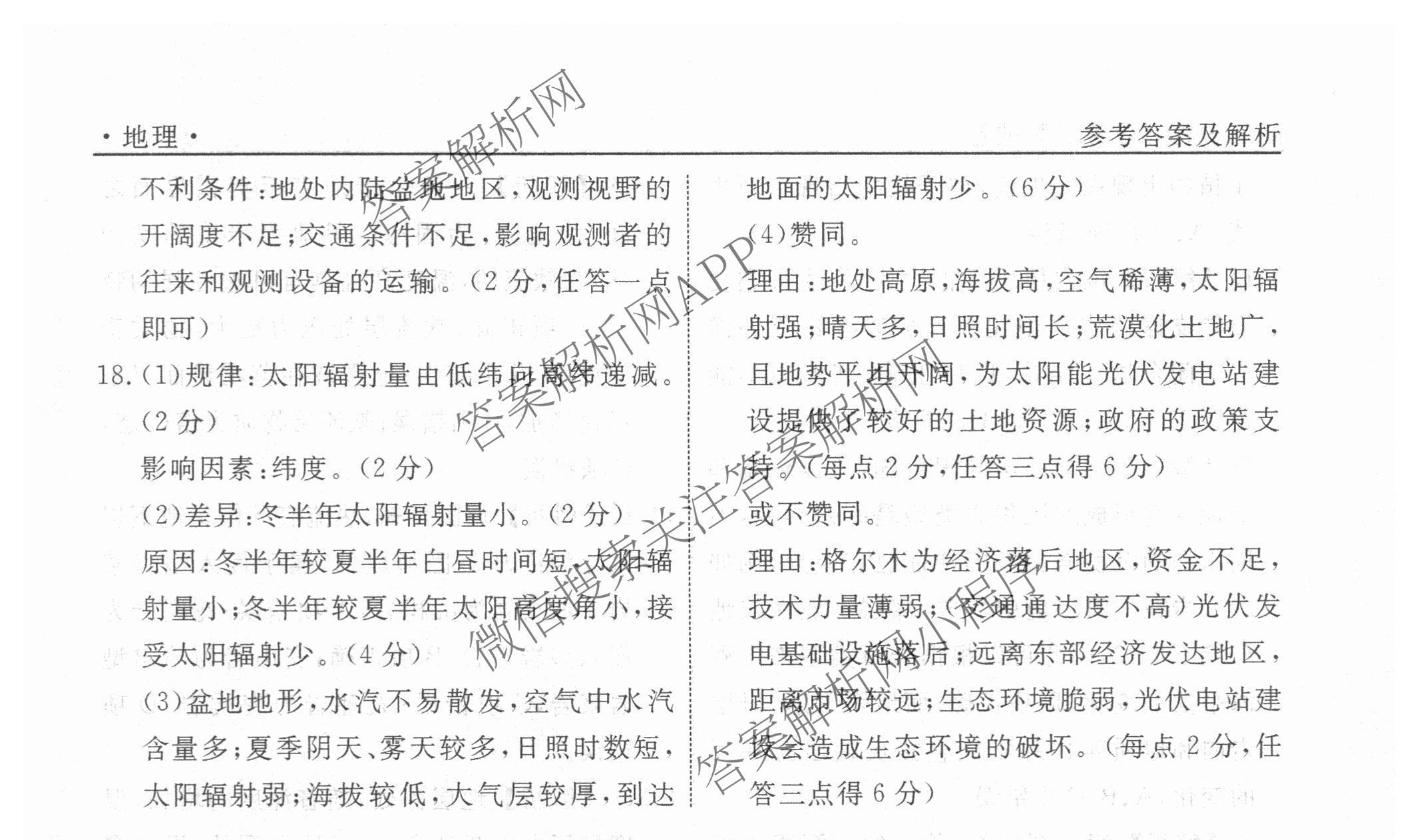 衡水名师卷2025-2026学年度高三一轮复习考点测试卷(二)2地理(40分钟空心菱形)答案