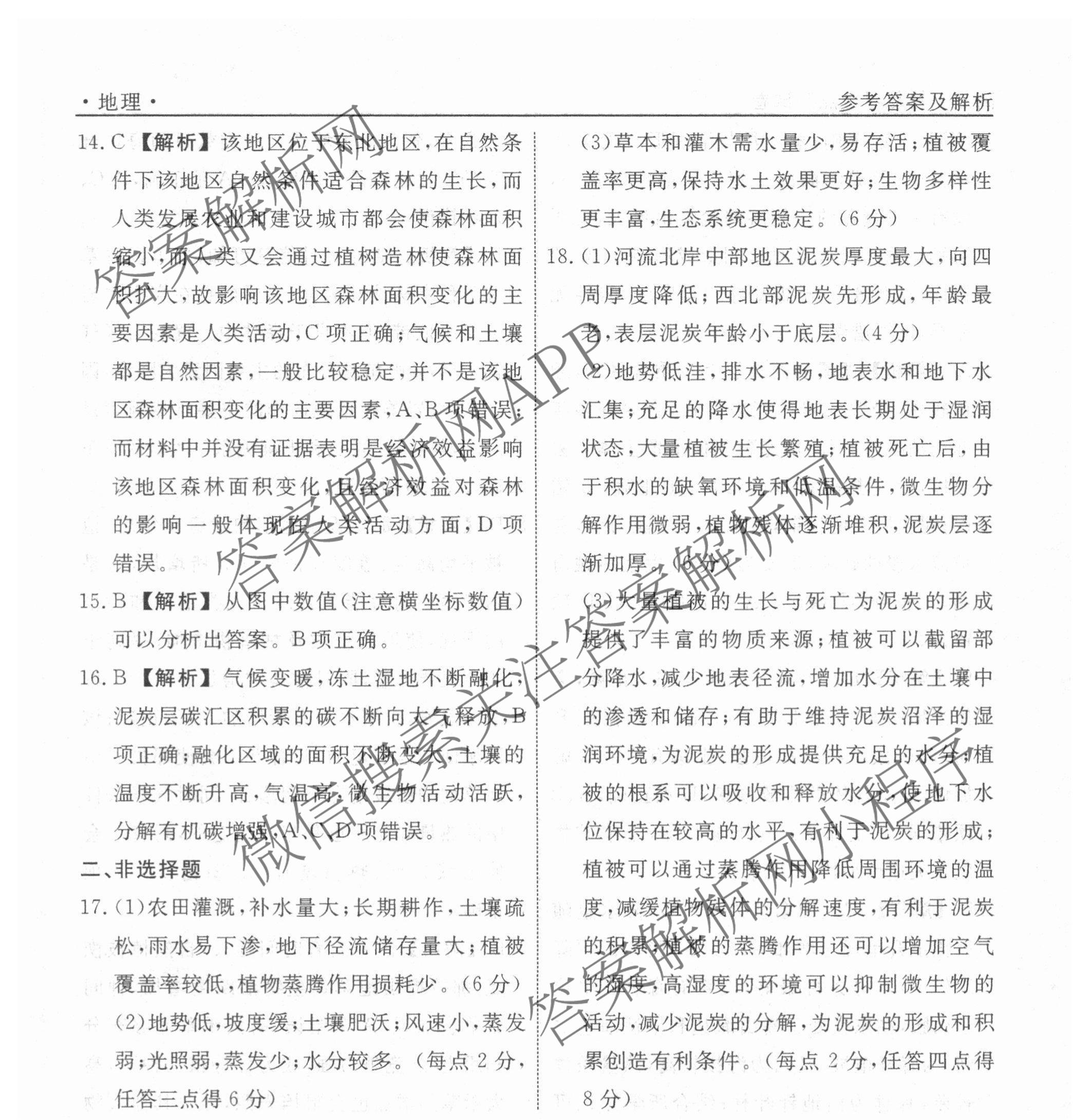 衡水名师卷2025-2026学年度高三一轮复习考点测试卷(十二)12地理(40分钟空心菱形)答案