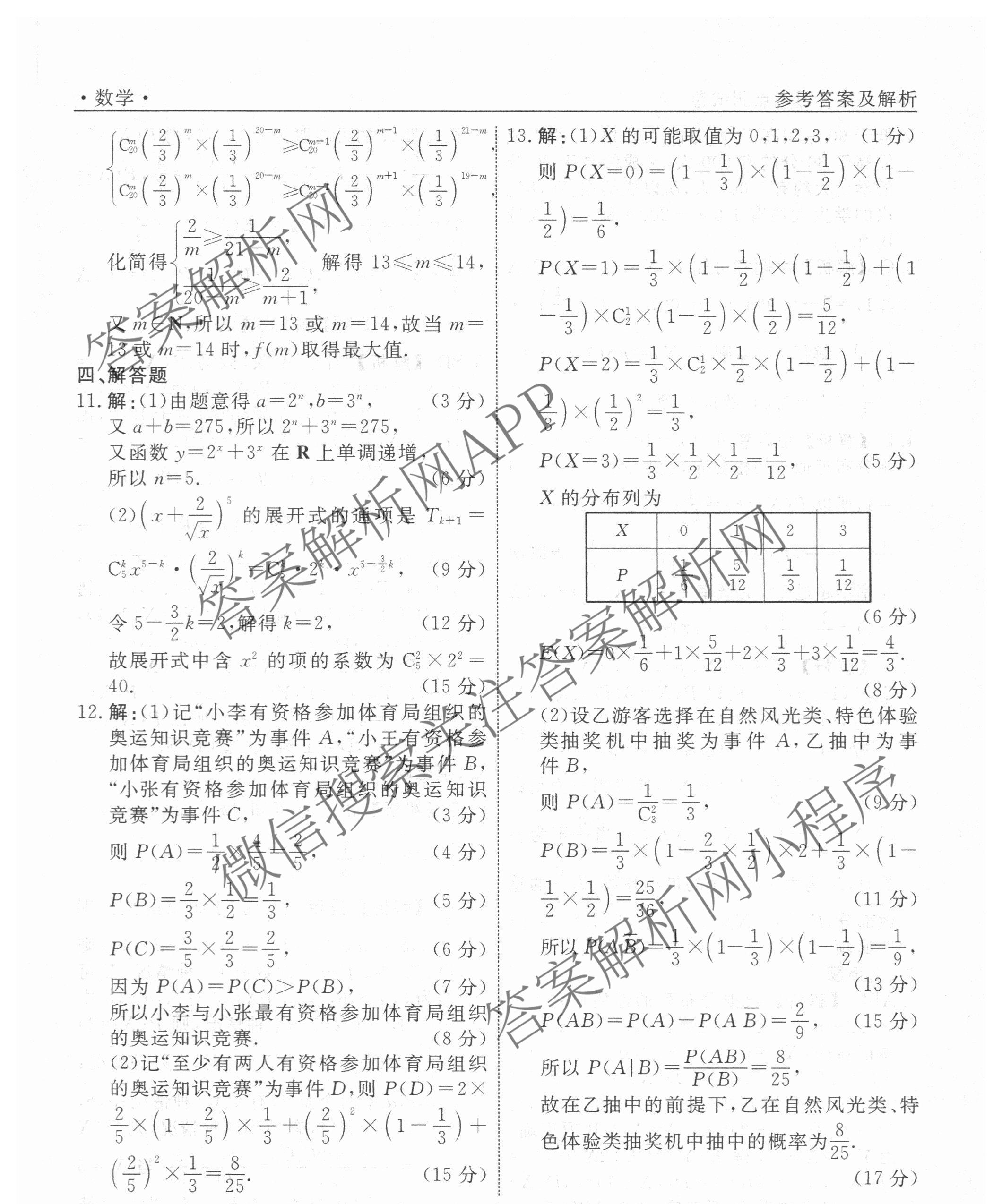 衡水名师卷2025-2026学年度高三一轮复习考点测试卷(二十八)28数学(40分钟空心菱形)答案
