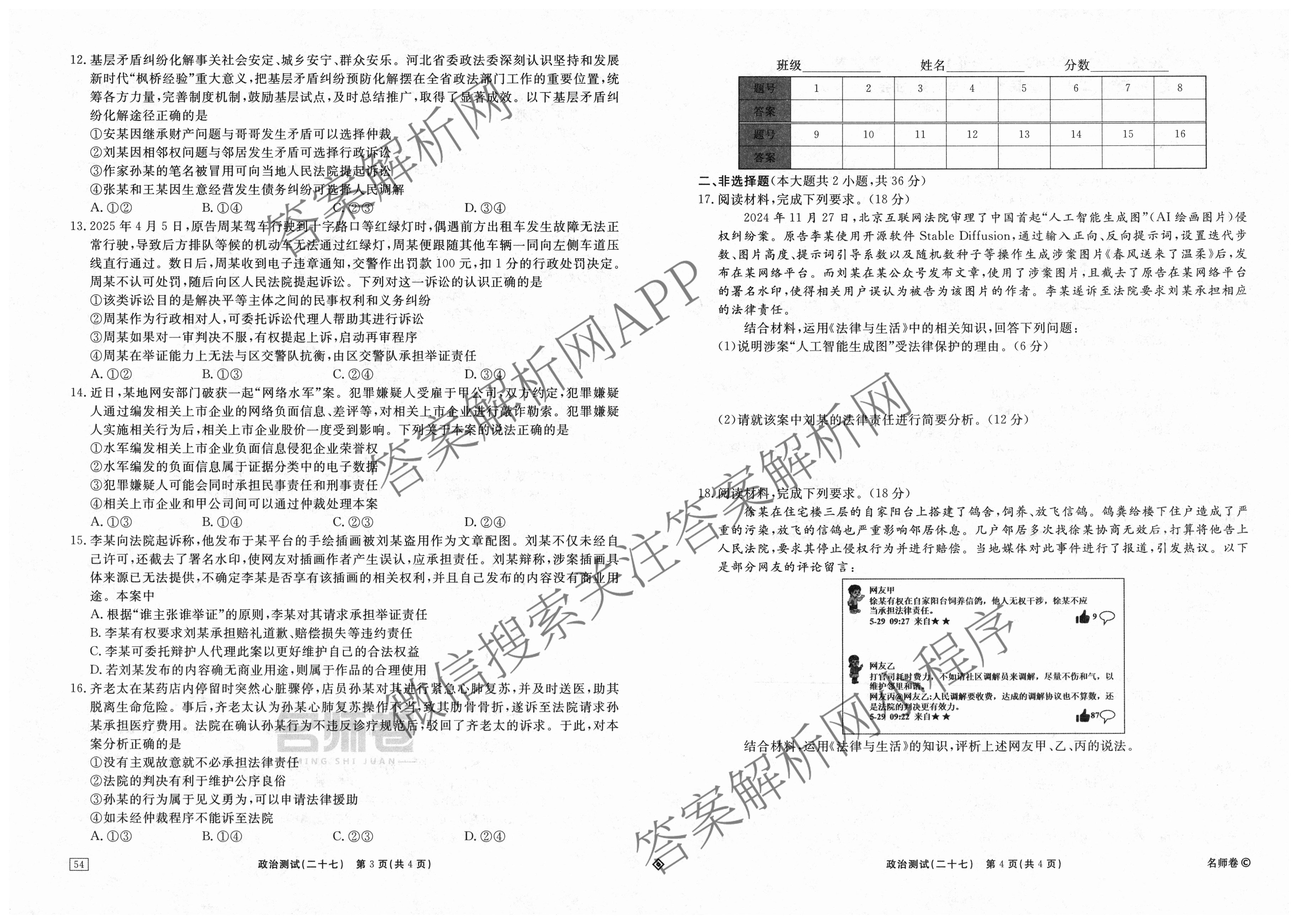 衡水名师卷2025-2026学年度高三一轮复习考点测试卷(二十七)27政治(40分钟·双菱形)试题,目前分科卷答案网已经汇总了衡水名师卷2025-2026学年度高三一轮复习考点测试卷(二十七)27政治(40分钟·双菱形)试题的各科答案和试卷,获取更多衡水名师卷答案解析,请在关注本站。