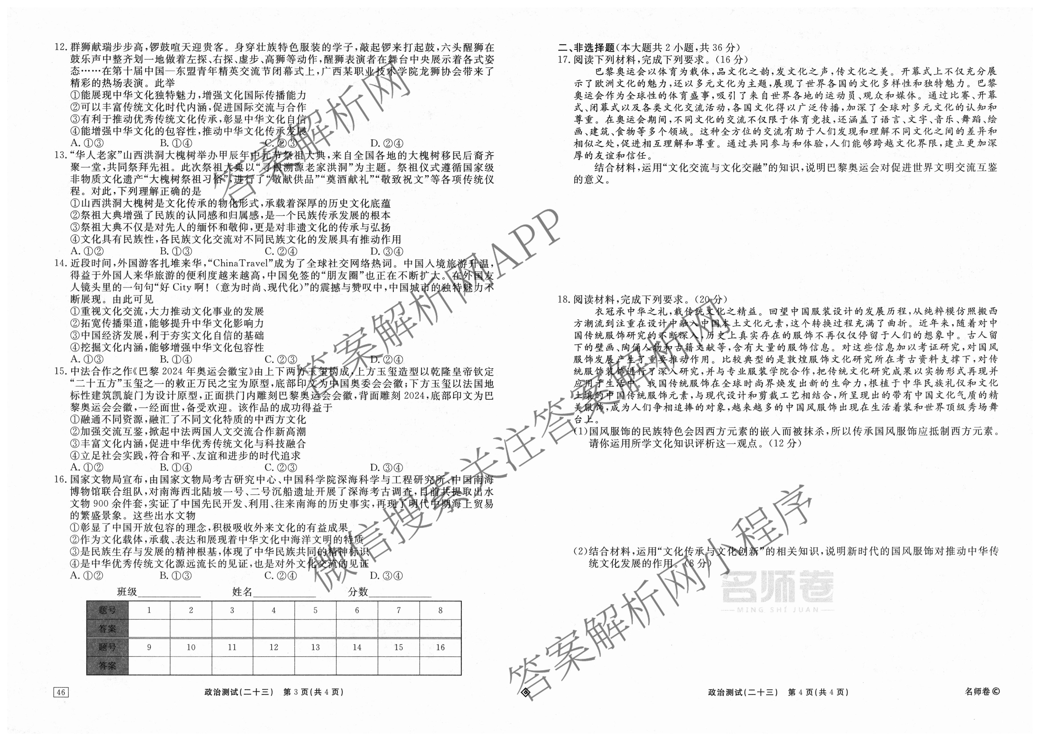 衡水名师卷2025-2026学年度高三一轮复习考点测试卷(二十三)23政治(40分钟·双菱形)试题,目前分科卷答案网已经汇总了衡水名师卷2025-2026学年度高三一轮复习考点测试卷(二十三)23政治(40分钟·双菱形)试题的各科答案和试卷,获取更多衡水名师卷答案解析,请在关注本站。