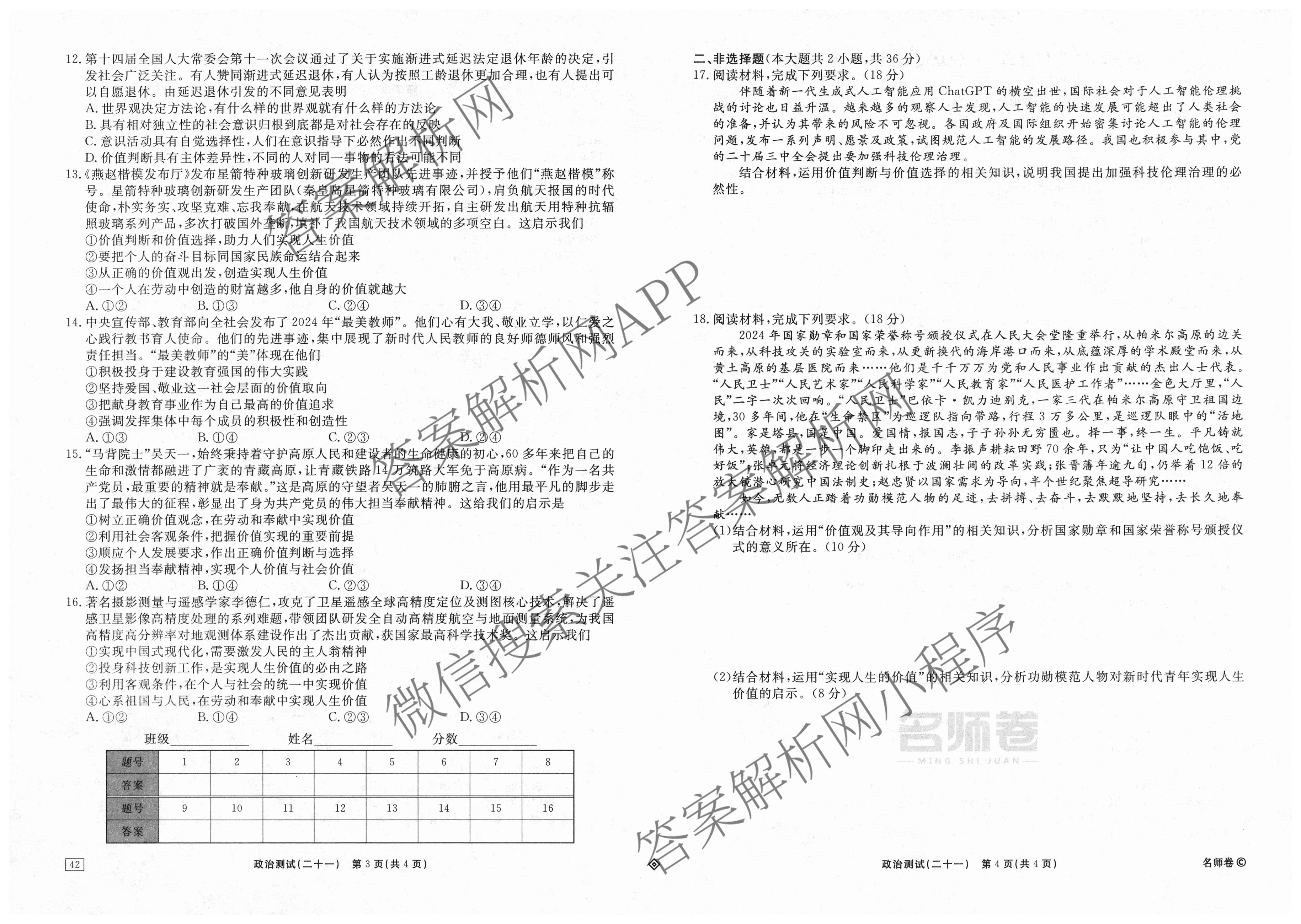 衡水名师卷2025-2026学年度高三一轮复习考点测试卷(二十一)21政治(40分钟·双菱形)试题,目前分科卷答案网已经汇总了衡水名师卷2025-2026学年度高三一轮复习考点测试卷(二十一)21政治(40分钟·双菱形)试题的各科答案和试卷,获取更多衡水名师卷答案解析,请在关注本站。