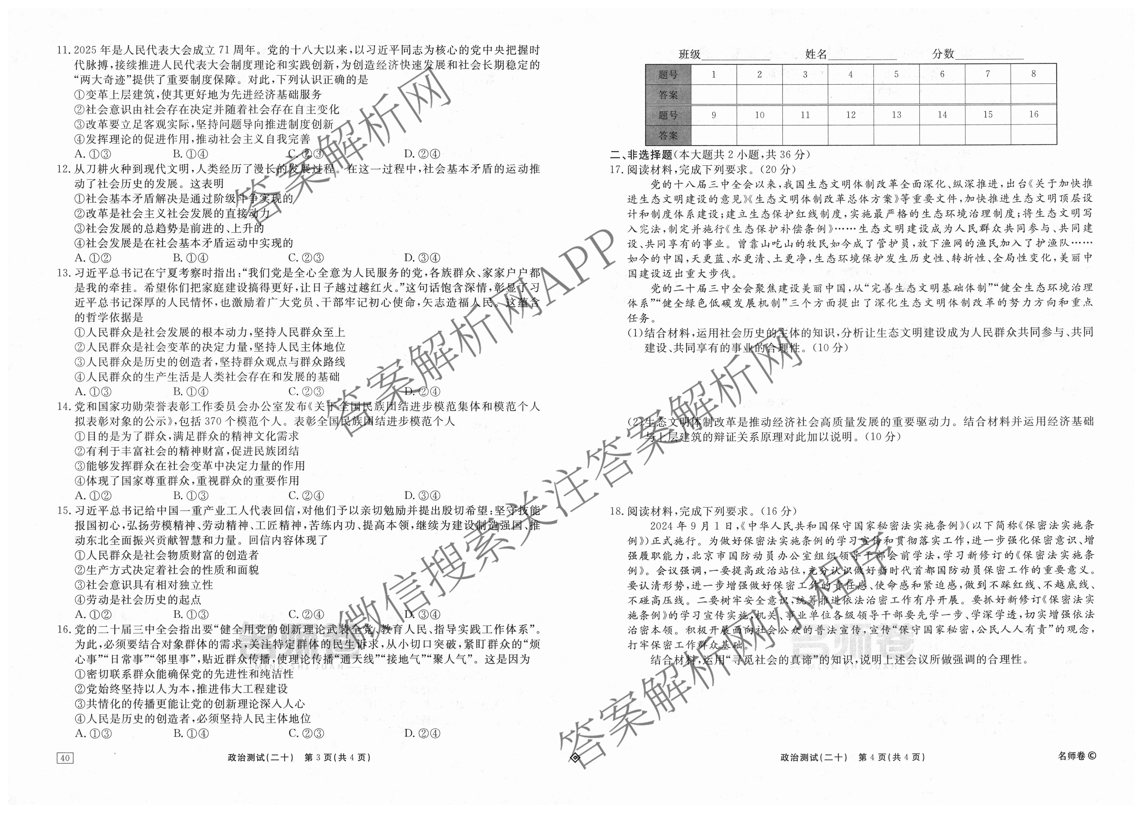 衡水名师卷2025-2026学年度高三一轮复习考点测试卷(二十)20政治(40分钟·双菱形)试题,目前分科卷答案网已经汇总了衡水名师卷2025-2026学年度高三一轮复习考点测试卷(二十)20政治(40分钟·双菱形)试题的各科答案和试卷,获取更多衡水名师卷答案解析,请在关注本站。