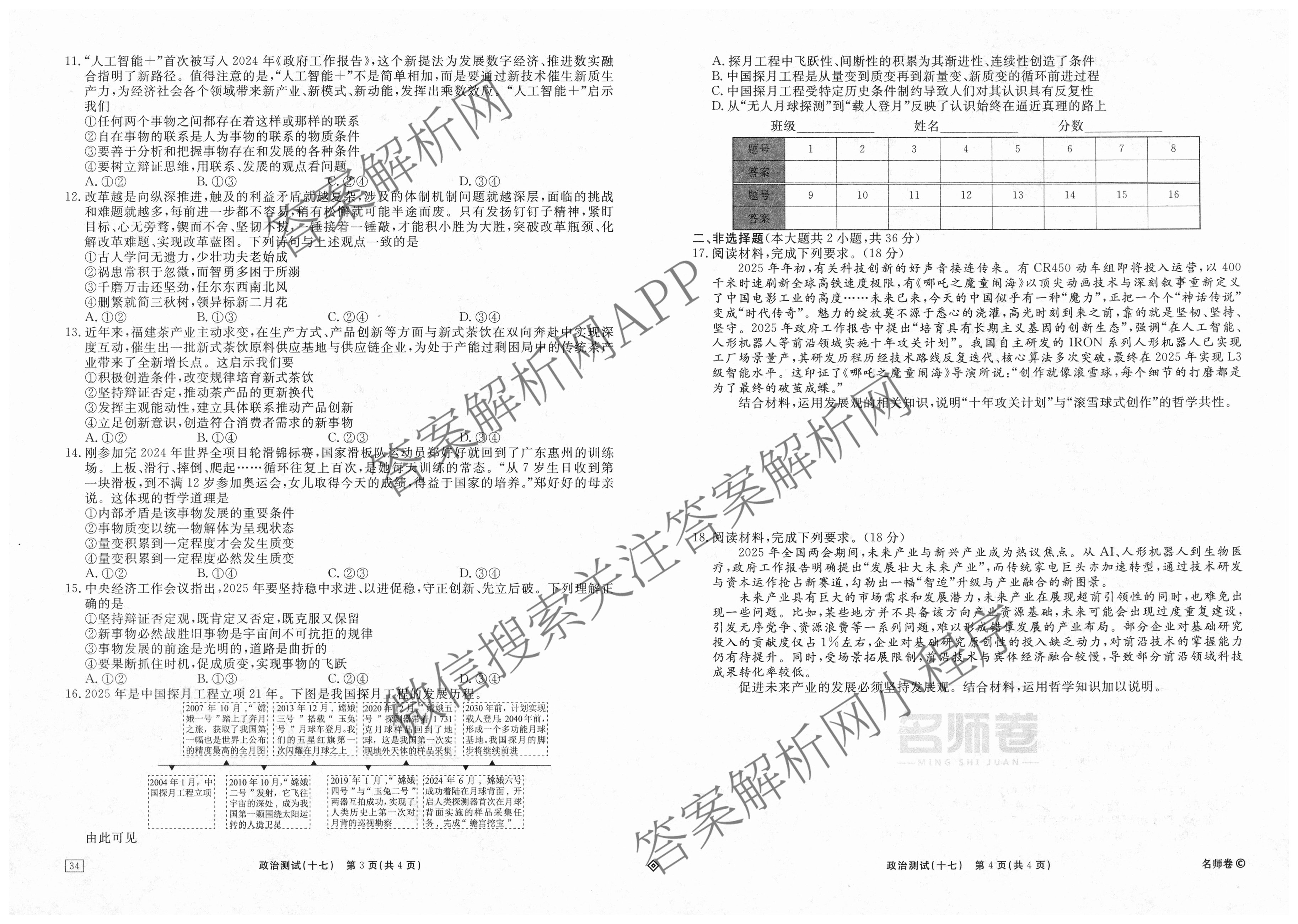 衡水名师卷2025-2026学年度高三一轮复习考点测试卷(十七)17政治(40分钟·双菱形)试题,目前分科卷答案网已经汇总了衡水名师卷2025-2026学年度高三一轮复习考点测试卷(十七)17政治(40分钟·双菱形)试题的各科答案和试卷,获取更多衡水名师卷答案解析,请在关注本站。