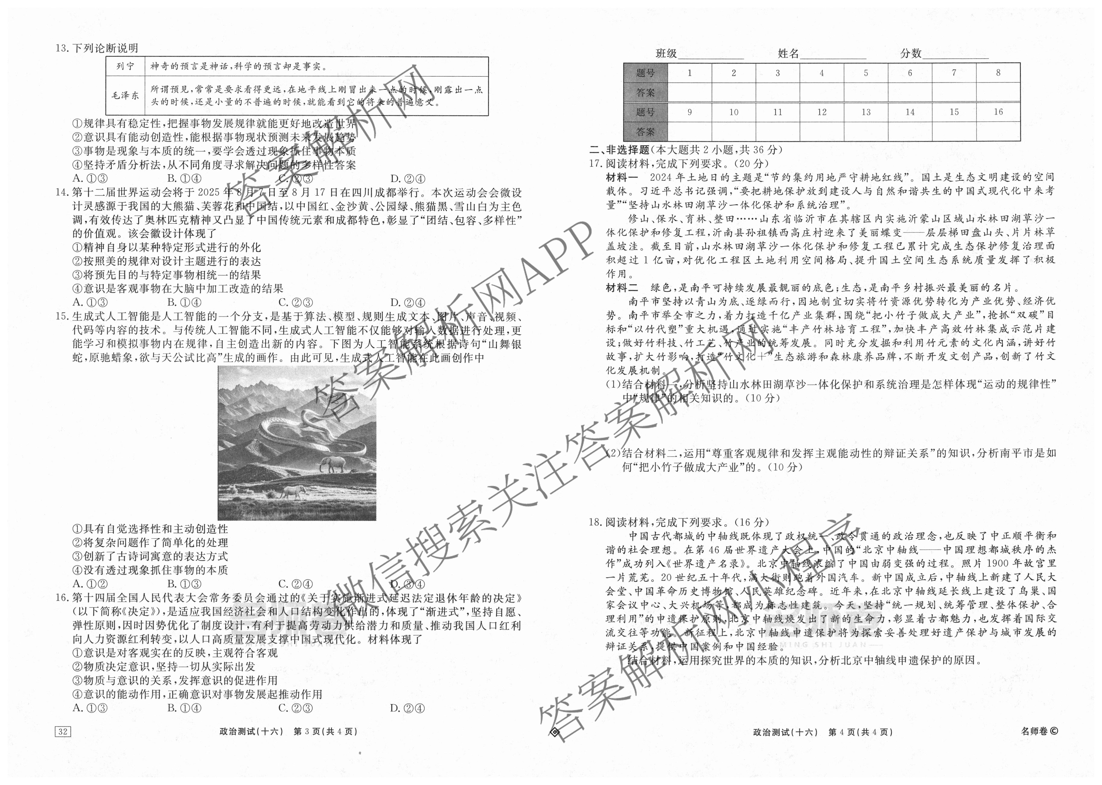 衡水名师卷2025-2026学年度高三一轮复习考点测试卷(十六)16政治(40分钟·双菱形)试题,目前分科卷答案网已经汇总了衡水名师卷2025-2026学年度高三一轮复习考点测试卷(十六)16政治(40分钟·双菱形)试题的各科答案和试卷,获取更多衡水名师卷答案解析,请在关注本站。