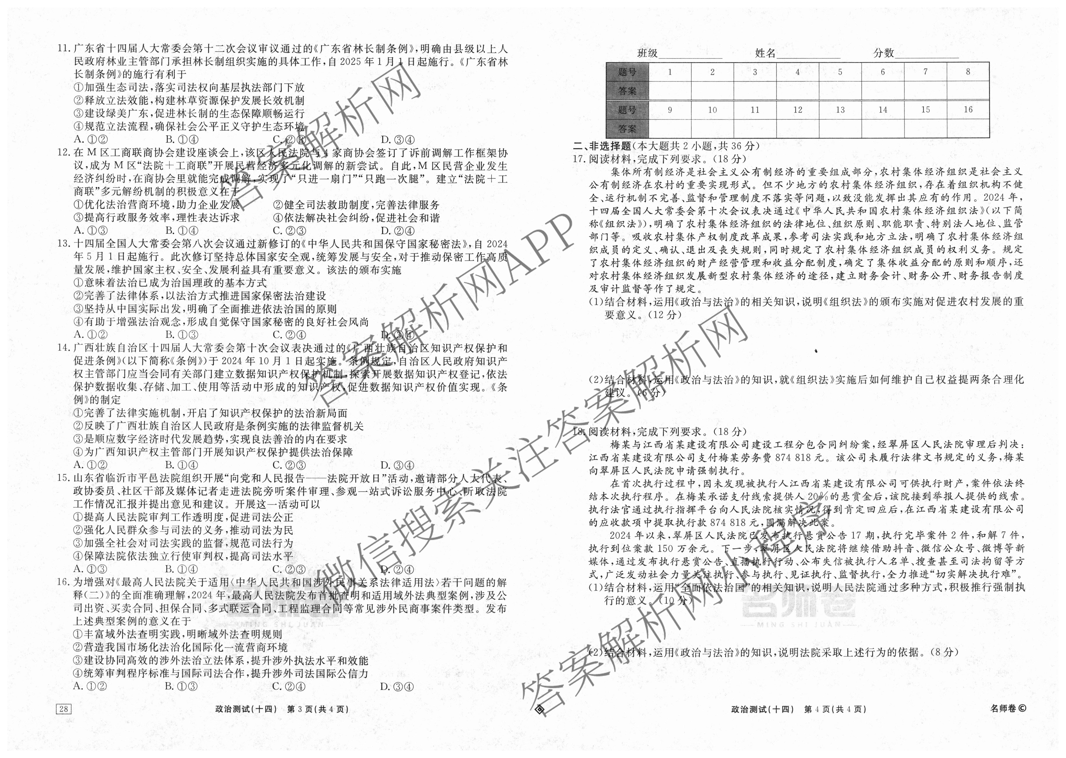 衡水名师卷2025-2026学年度高三一轮复习考点测试卷(十四)14政治(40分钟·双菱形)试题,目前分科卷答案网已经汇总了衡水名师卷2025-2026学年度高三一轮复习考点测试卷(十四)14政治(40分钟·双菱形)试题的各科答案和试卷,获取更多衡水名师卷答案解析,请在关注本站。