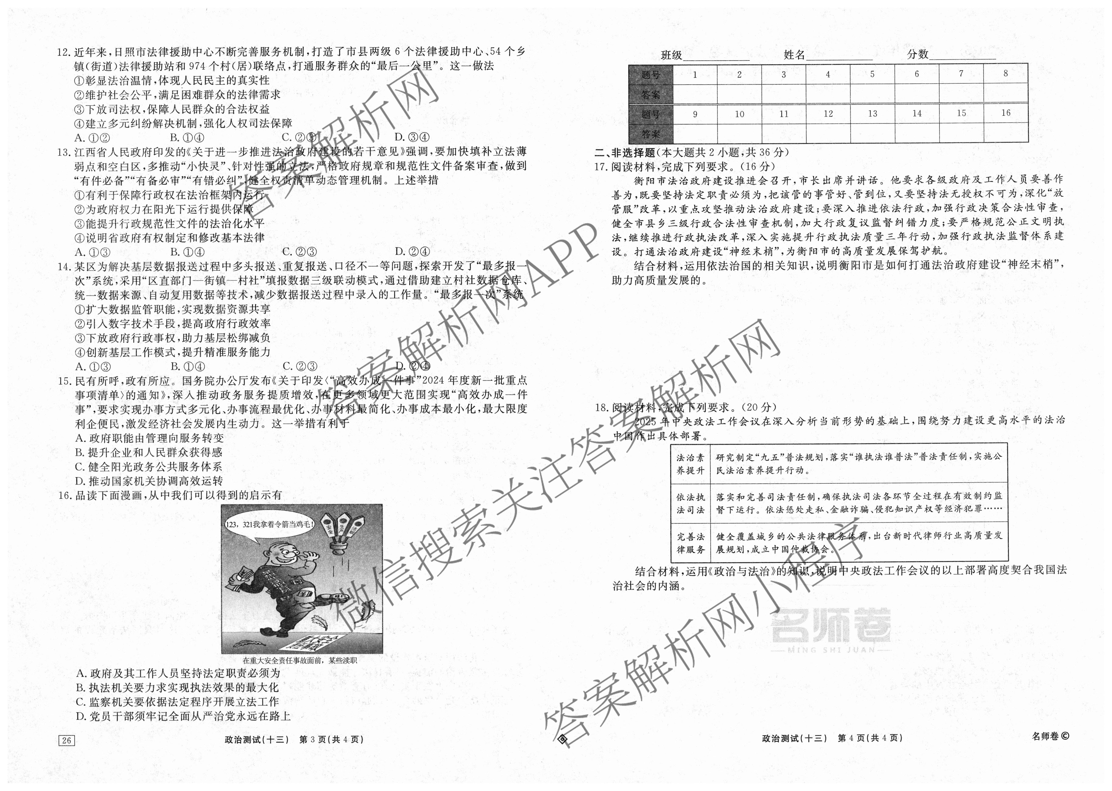 衡水名师卷2025-2026学年度高三一轮复习考点测试卷(十三)13政治(40分钟·双菱形)试题,目前分科卷答案网已经汇总了衡水名师卷2025-2026学年度高三一轮复习考点测试卷(十三)13政治(40分钟·双菱形)试题的各科答案和试卷,获取更多衡水名师卷答案解析,请在关注本站。