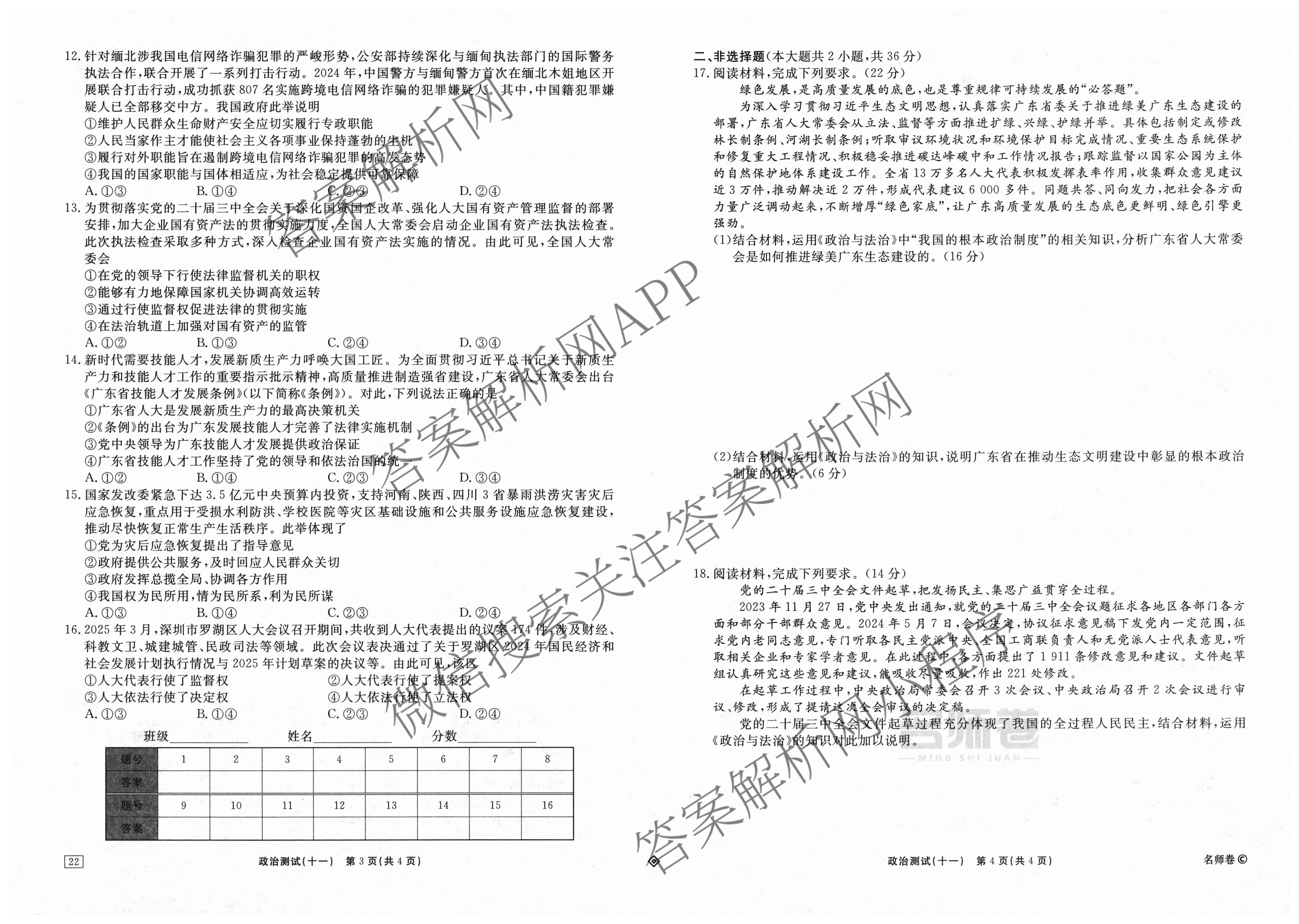衡水名师卷2025-2026学年度高三一轮复习考点测试卷(十一)11政治(40分钟·双菱形)试题,目前分科卷答案网已经汇总了衡水名师卷2025-2026学年度高三一轮复习考点测试卷(十一)11政治(40分钟·双菱形)试题的各科答案和试卷,获取更多衡水名师卷答案解析,请在关注本站。