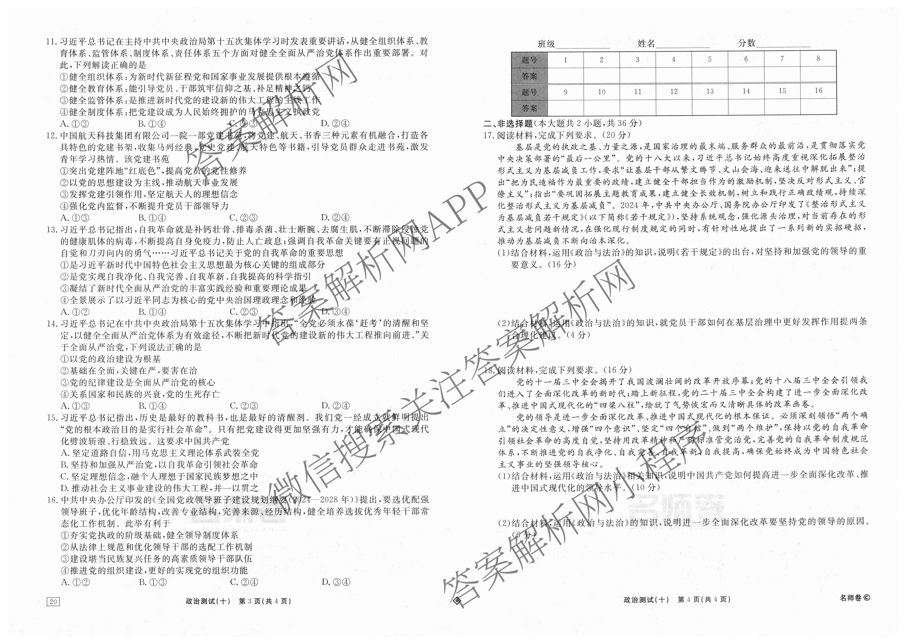衡水名师卷2025-2026学年度高三一轮复习考点测试卷(十)10政治(40分钟·双菱形)试题,目前分科卷答案网已经汇总了衡水名师卷2025-2026学年度高三一轮复习考点测试卷(十)10政治(40分钟·双菱形)试题的各科答案和试卷,获取更多衡水名师卷答案解析,请在关注本站。