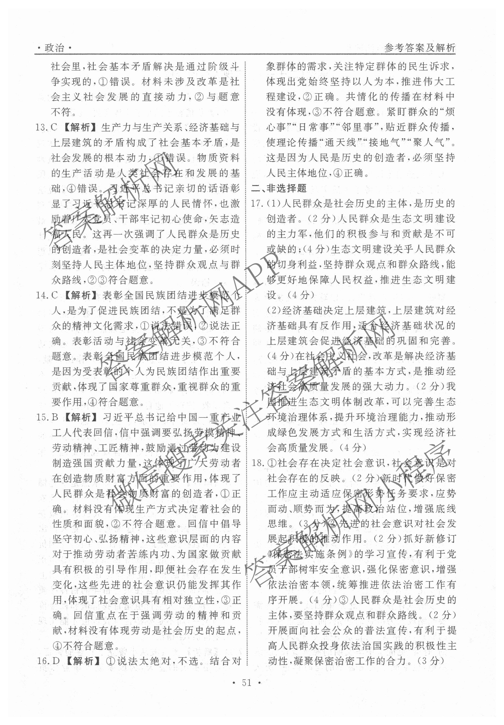 衡水名师卷2025-2026学年度高三一轮复习考点测试卷(二十)20政治(40分钟双菱形)答案