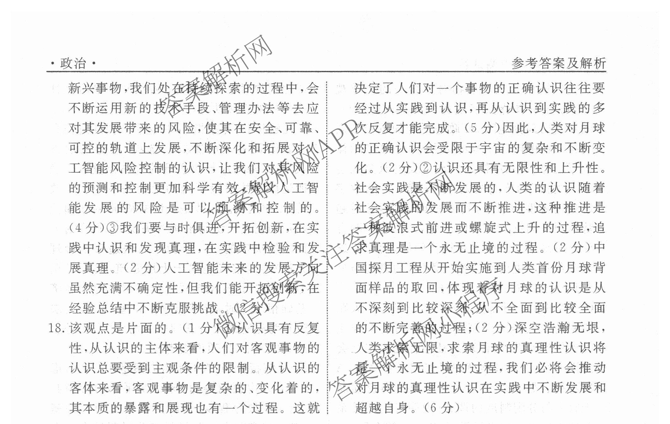 衡水名师卷2025-2026学年度高三一轮复习考点测试卷(十九)19政治(40分钟双菱形)答案