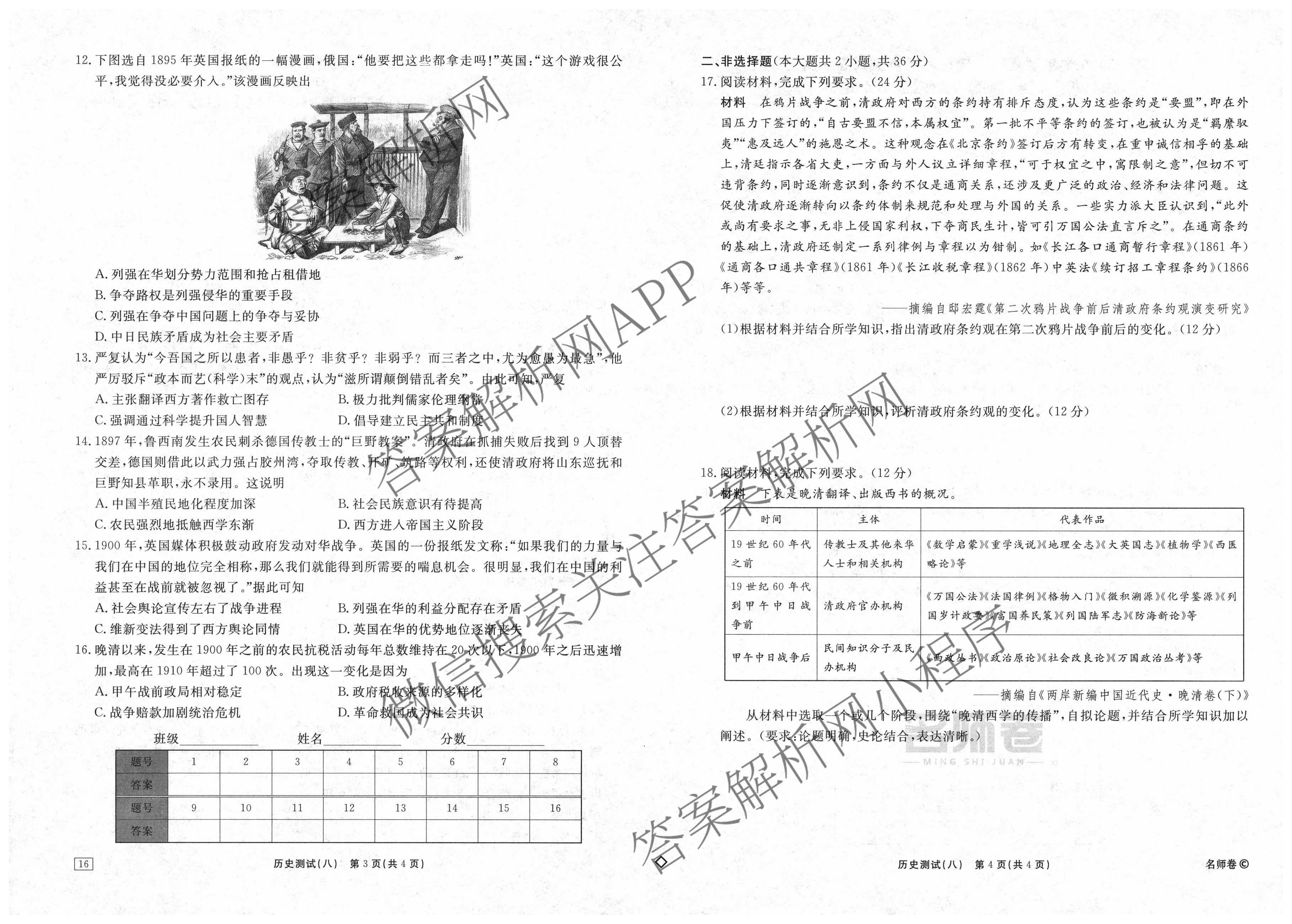衡水名师卷2025-2026学年度高三一轮复习考点测试卷(八)8历史(40分钟·空心菱形)试题,目前分科卷答案网已经汇总了衡水名师卷2025-2026学年度高三一轮复习考点测试卷(八)8历史(40分钟·空心菱形)试题的各科答案和试卷,获取更多衡水名师卷答案解析,请在关注本站。