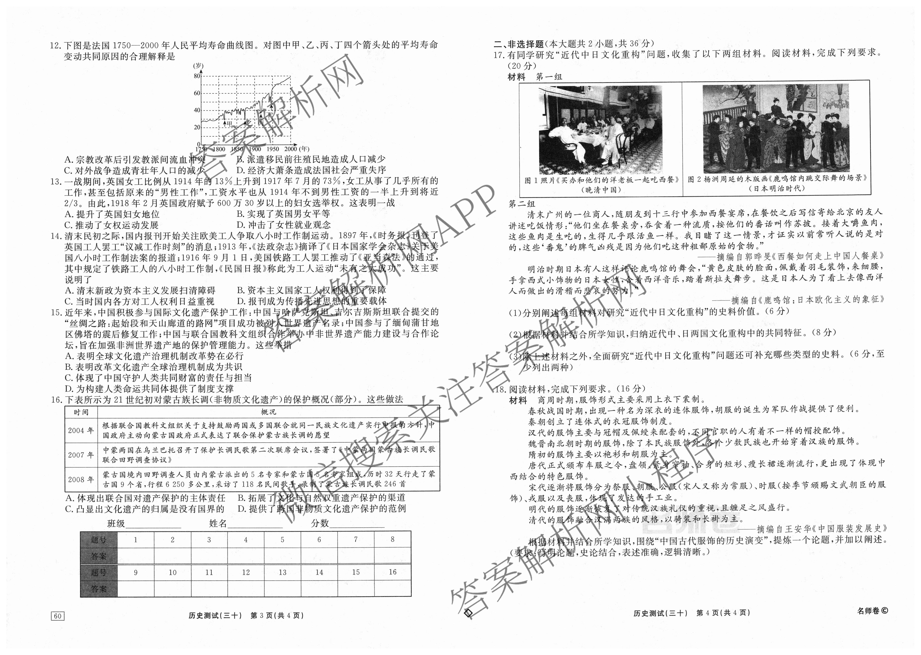 衡水名师卷2025-2026学年度高三一轮复习考点测试卷(三十)30历史(40分钟空心菱形)试题