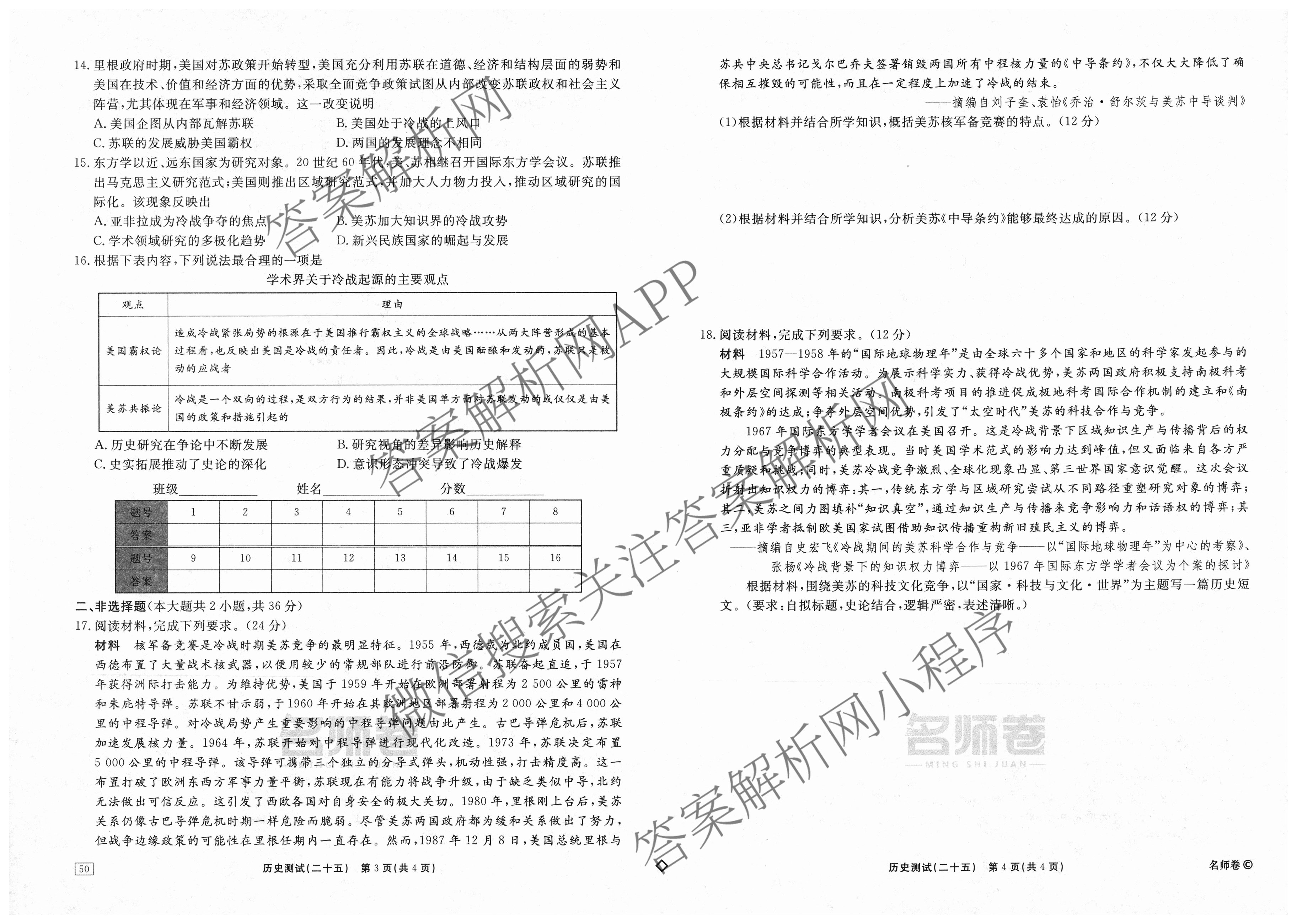 衡水名师卷2025-2026学年度高三一轮复习考点测试卷(二十五)25历史(40分钟空心菱形)试题