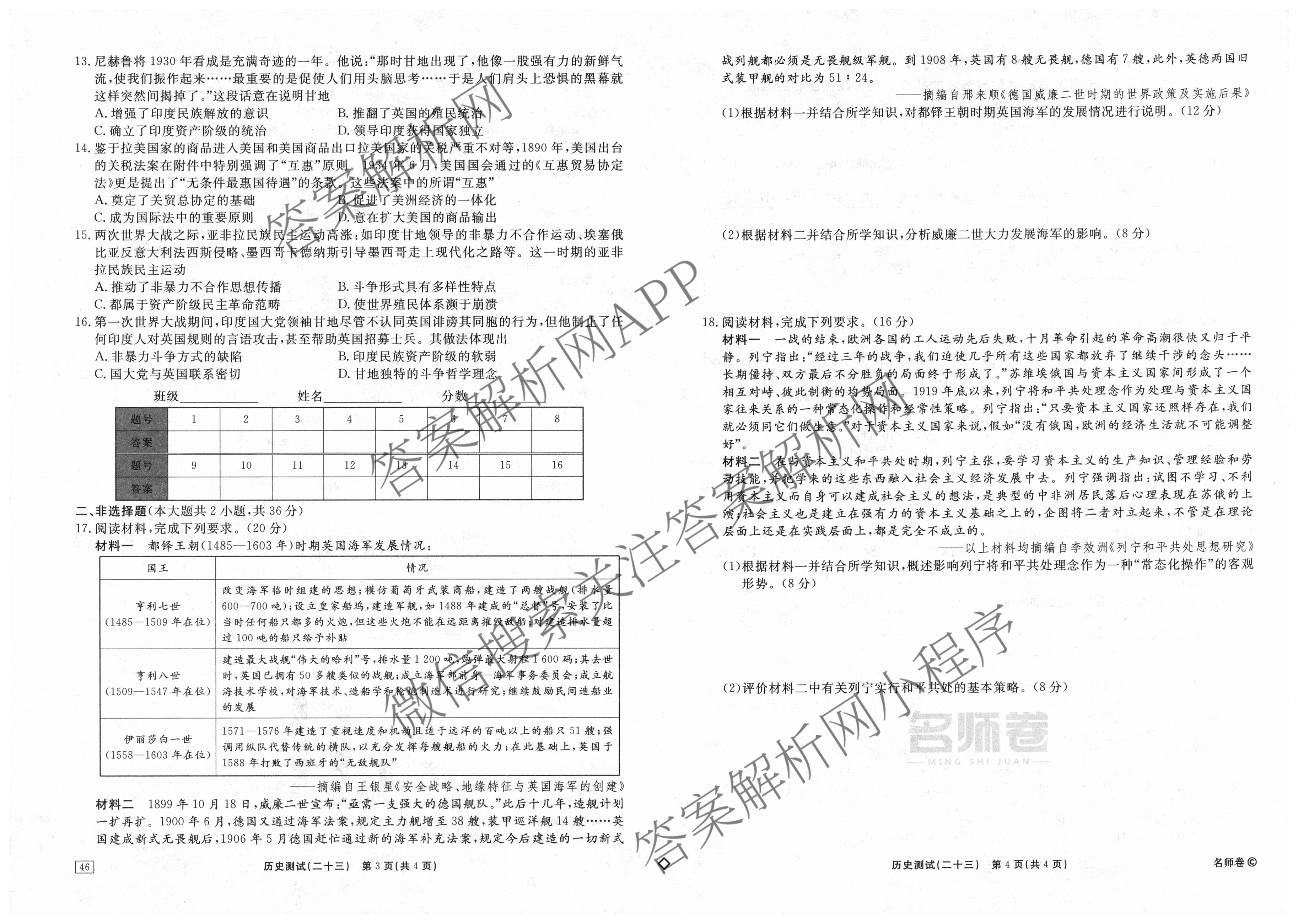 衡水名师卷2025-2026学年度高三一轮复习考点测试卷(二十三)23历史(40分钟·空心菱形)试题,目前分科卷答案网已经汇总了衡水名师卷2025-2026学年度高三一轮复习考点测试卷(二十三)23历史(40分钟·空心菱形)试题的各科答案和试卷,获取更多衡水名师卷答案解析,请在关注本站。
