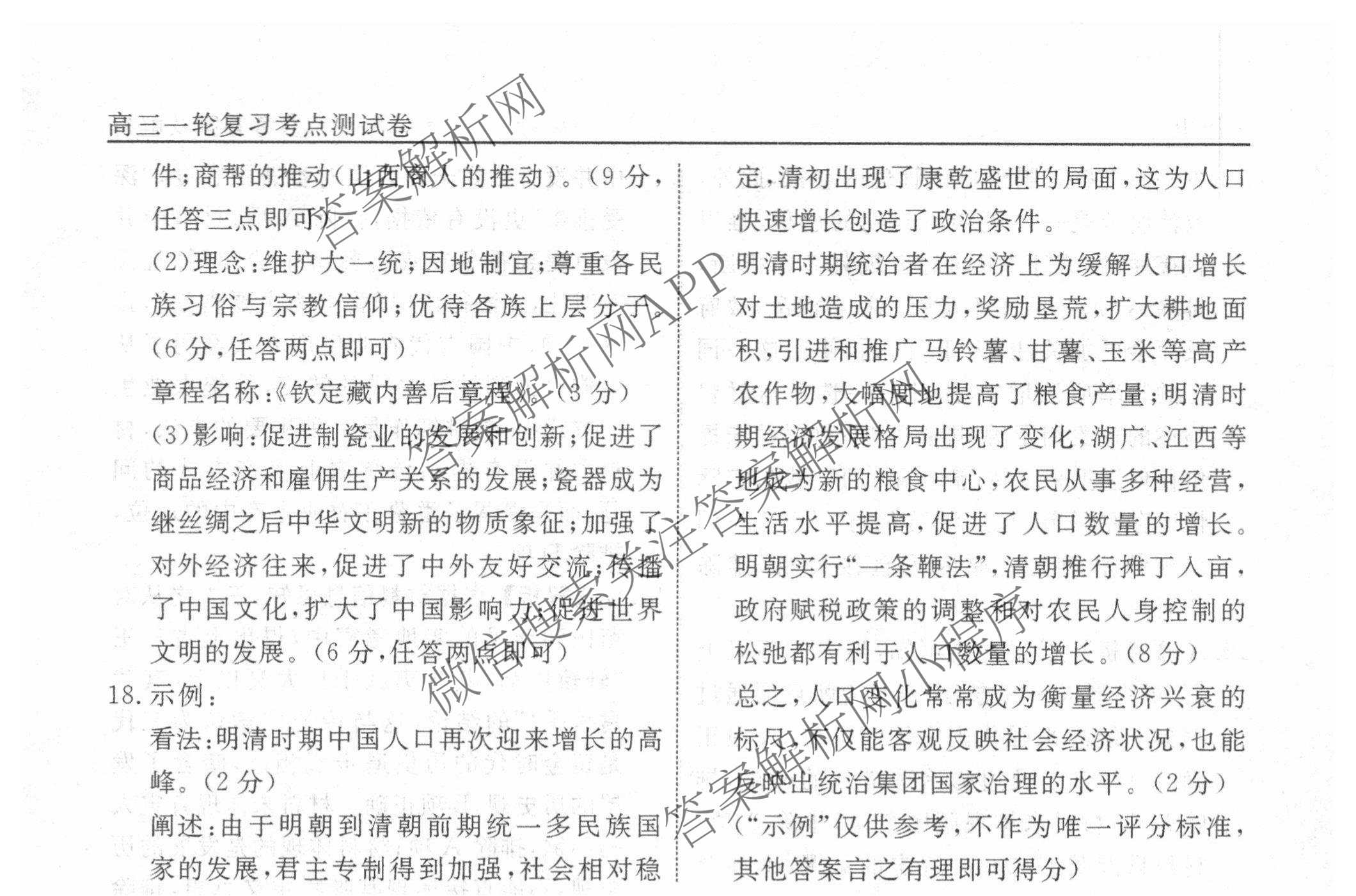 衡水名师卷2025-2026学年度高三一轮复习考点测试卷(七)7历史(40分钟空心菱形)答案