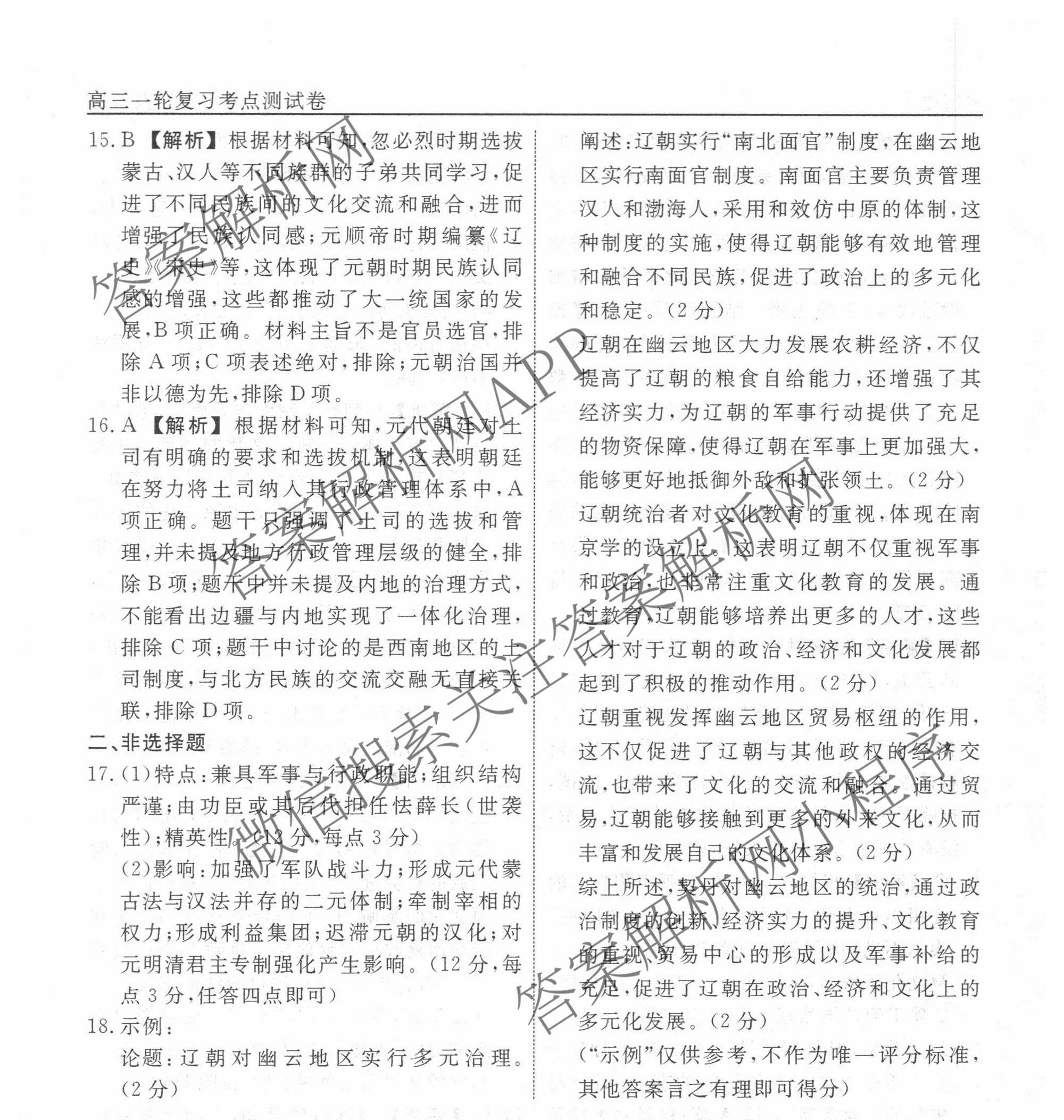 衡水名师卷2025-2026学年度高三一轮复习考点测试卷(五)5历史(40分钟空心菱形)答案