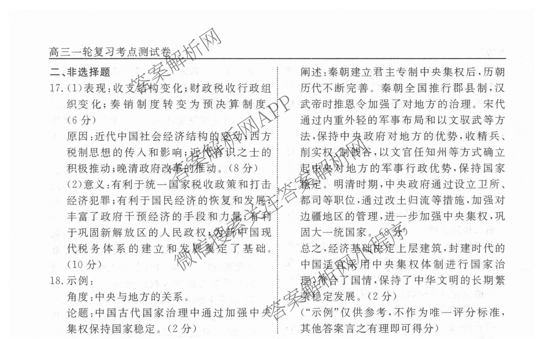 衡水名师卷2025-2026学年度高三一轮复习考点测试卷(二十八)28历史(40分钟空心菱形)答案