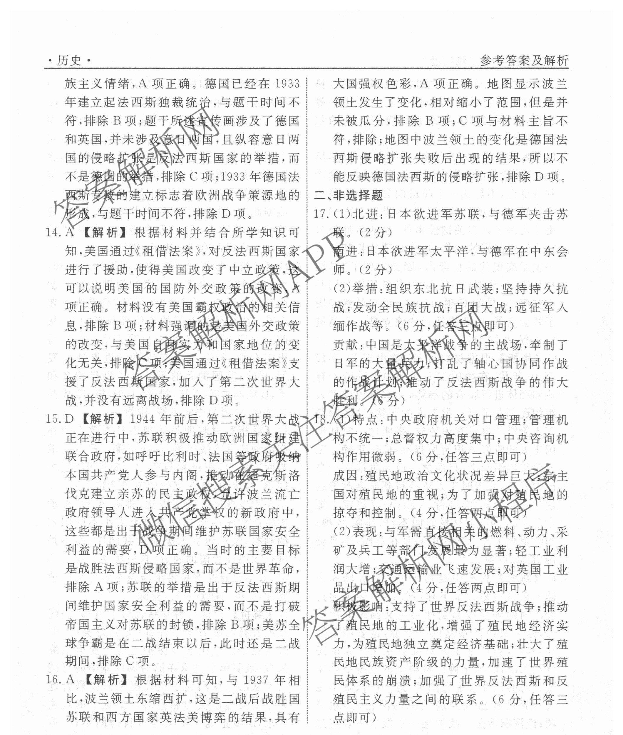 衡水名师卷2025-2026学年度高三一轮复习考点测试卷(二十四)24历史(40分钟空心菱形)答案