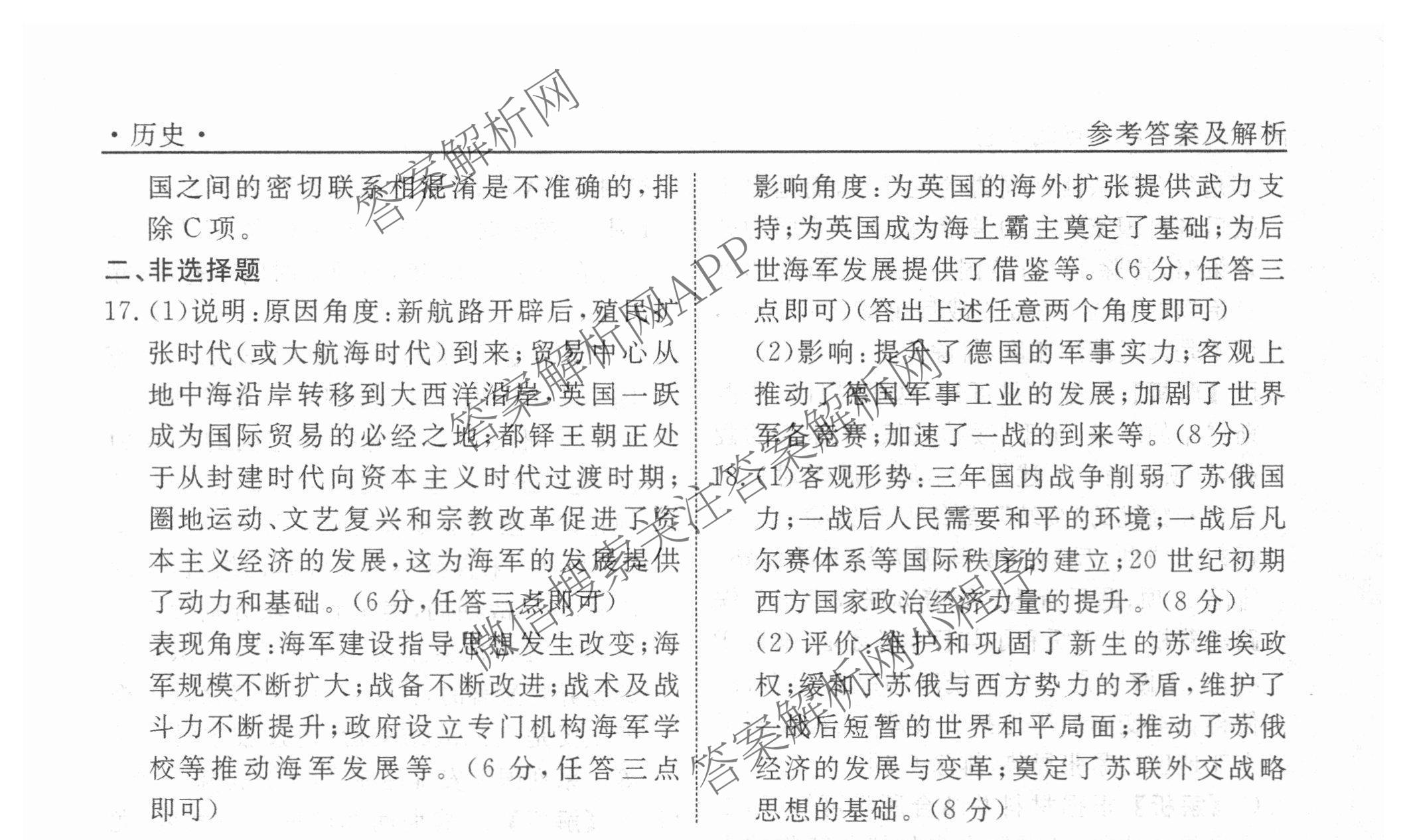 衡水名师卷2025-2026学年度高三一轮复习考点测试卷(二十三)23历史(40分钟空心菱形)答案