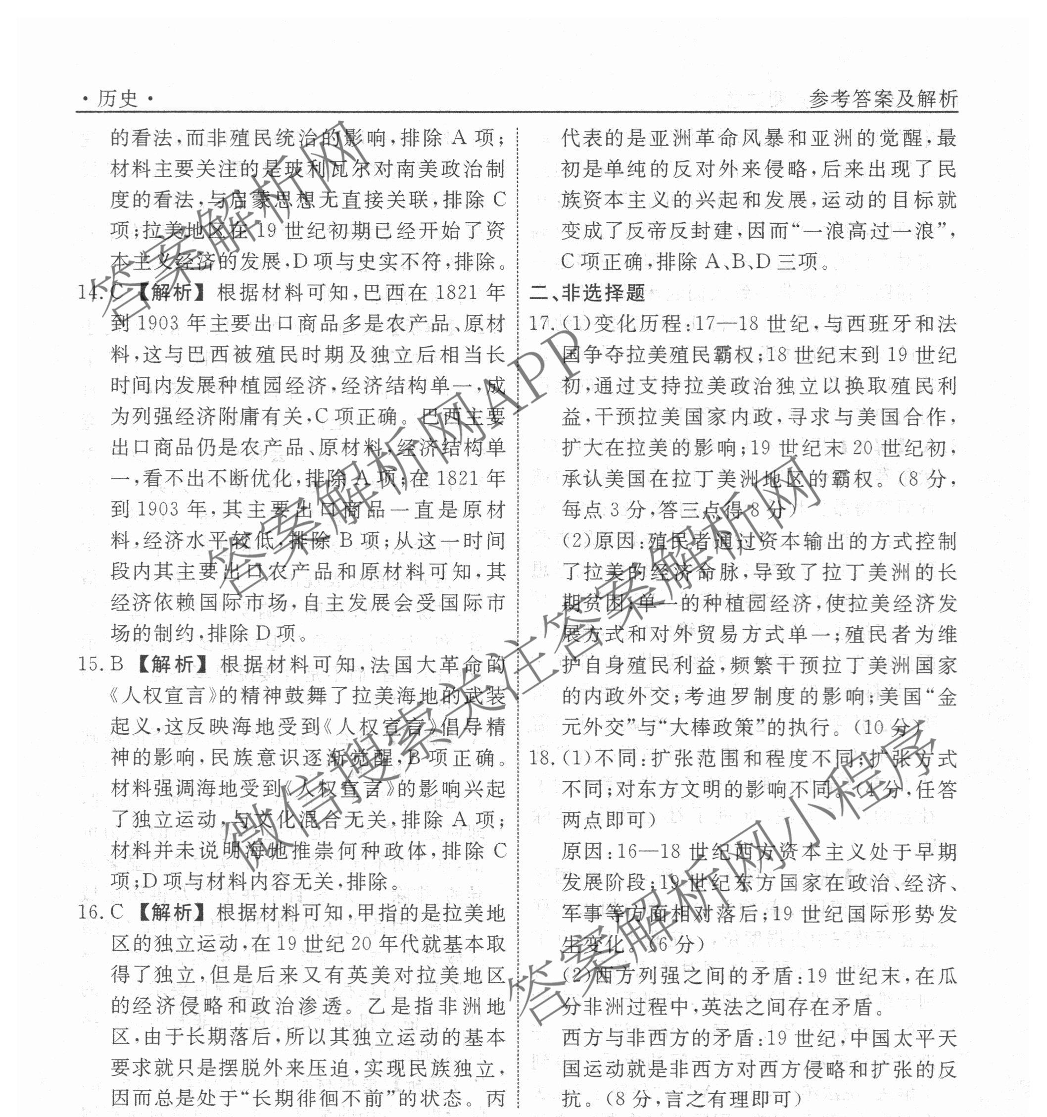 衡水名师卷2025-2026学年度高三一轮复习考点测试卷(二十一)21历史(40分钟空心菱形)答案