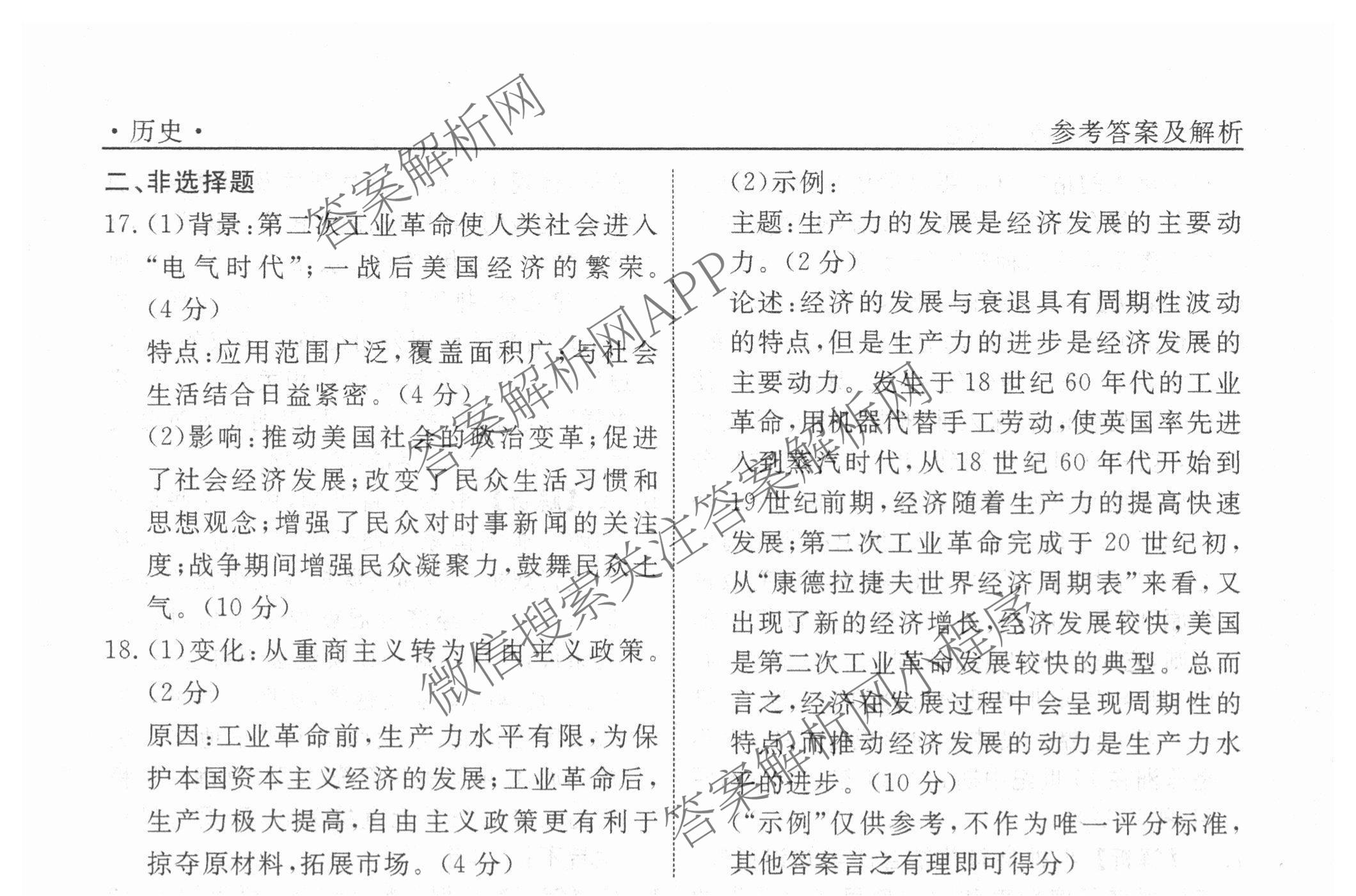 衡水名师卷2025-2026学年度高三一轮复习考点测试卷(二十)20历史(40分钟空心菱形)答案