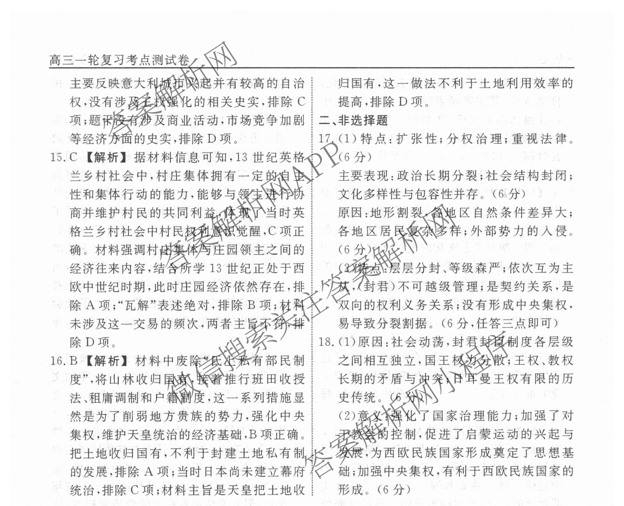 衡水名师卷2025-2026学年度高三一轮复习考点测试卷(十七)17历史(40分钟空心菱形)答案