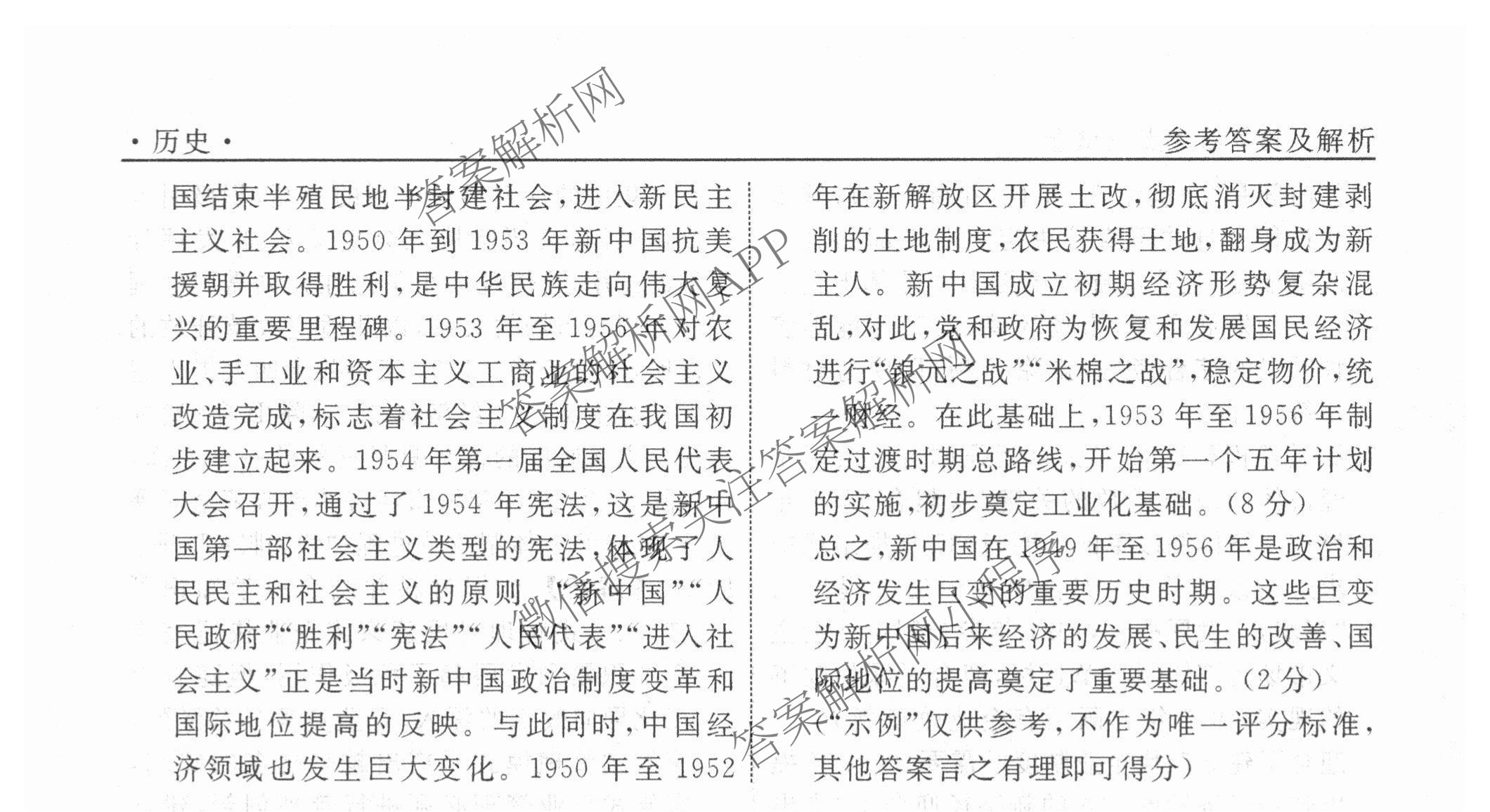 衡水名师卷2025-2026学年度高三一轮复习考点测试卷(十三)13历史(40分钟空心菱形)答案