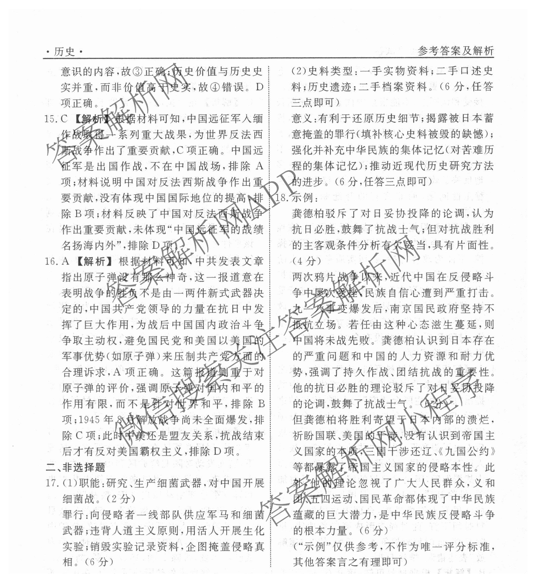 衡水名师卷2025-2026学年度高三一轮复习考点测试卷(十一)11历史(40分钟空心菱形)答案