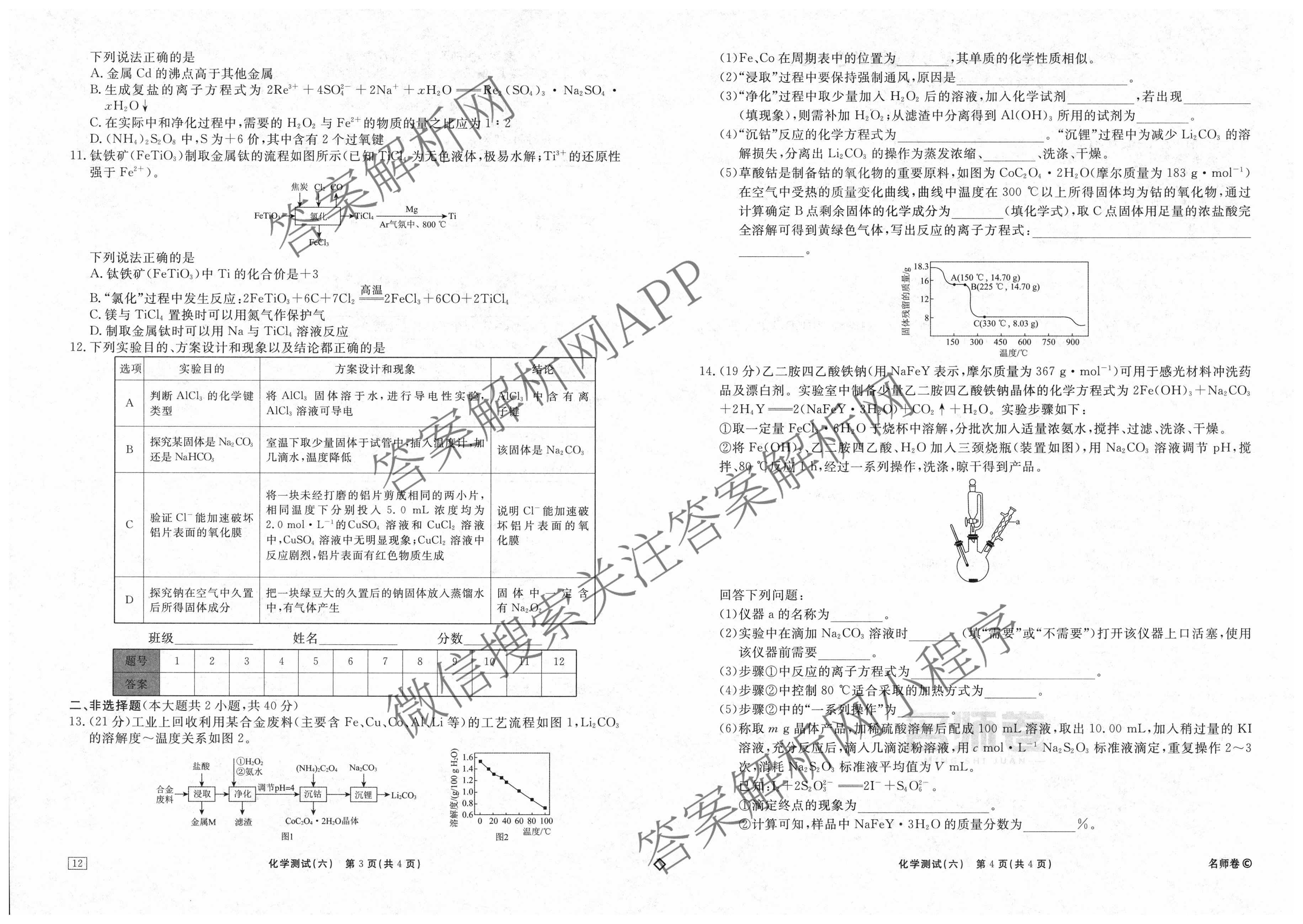 衡水名师卷2025-2026学年度高三一轮复习考点测试卷(六)6化学(40分钟·空心菱形)试题,目前分科卷答案网已经汇总了衡水名师卷2025-2026学年度高三一轮复习考点测试卷(六)6化学(40分钟·空心菱形)试题的各科答案和试卷,获取更多衡水名师卷答案解析,请在关注本站。