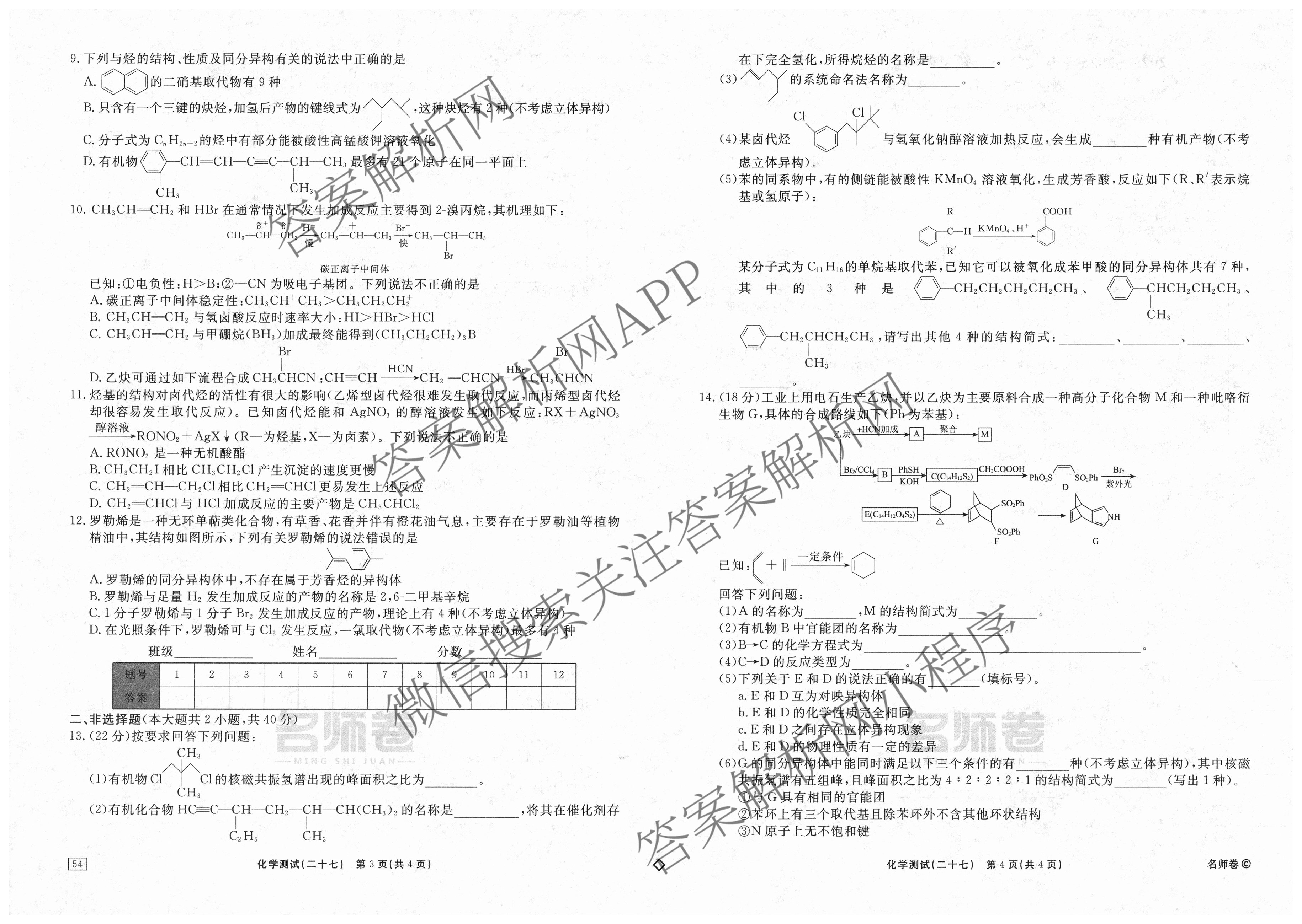 衡水名师卷2025-2026学年度高三一轮复习考点测试卷(二十七)27化学(40分钟·空心菱形)试题,目前分科卷答案网已经汇总了衡水名师卷2025-2026学年度高三一轮复习考点测试卷(二十七)27化学(40分钟·空心菱形)试题的各科答案和试卷,获取更多衡水名师卷答案解析,请在关注本站。