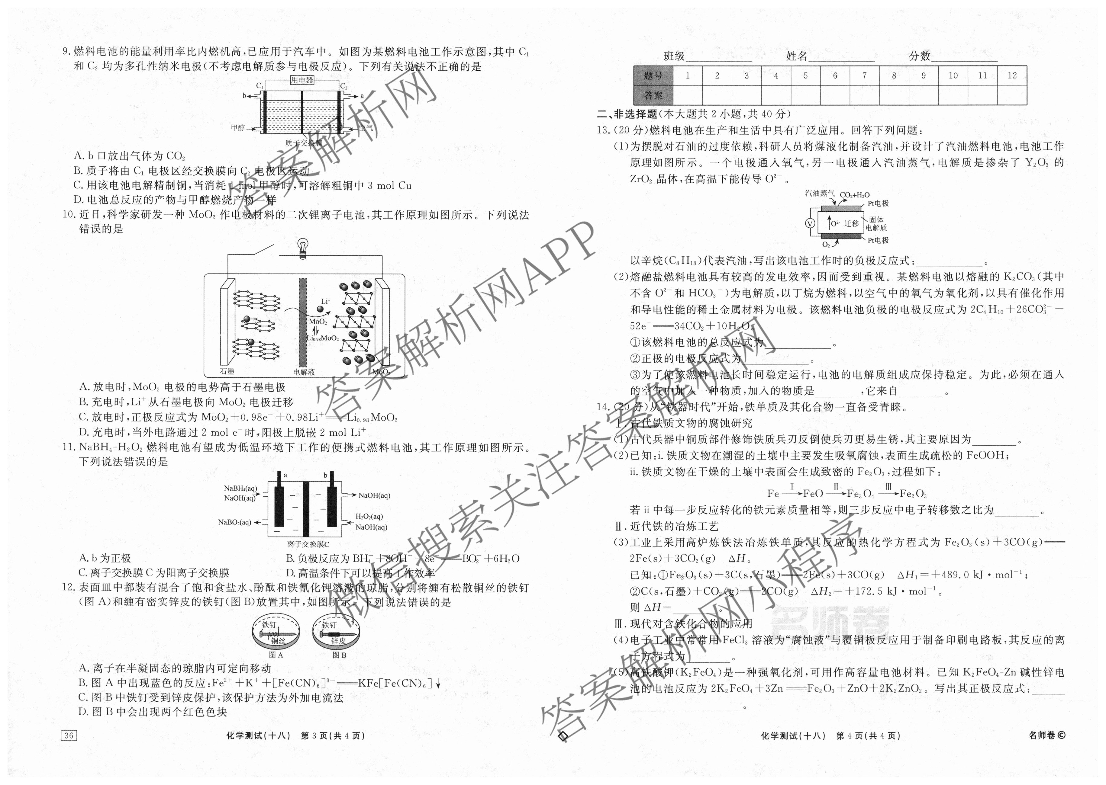 衡水名师卷2025-2026学年度高三一轮复习考点测试卷(十八)18化学(40分钟空心菱形)试题