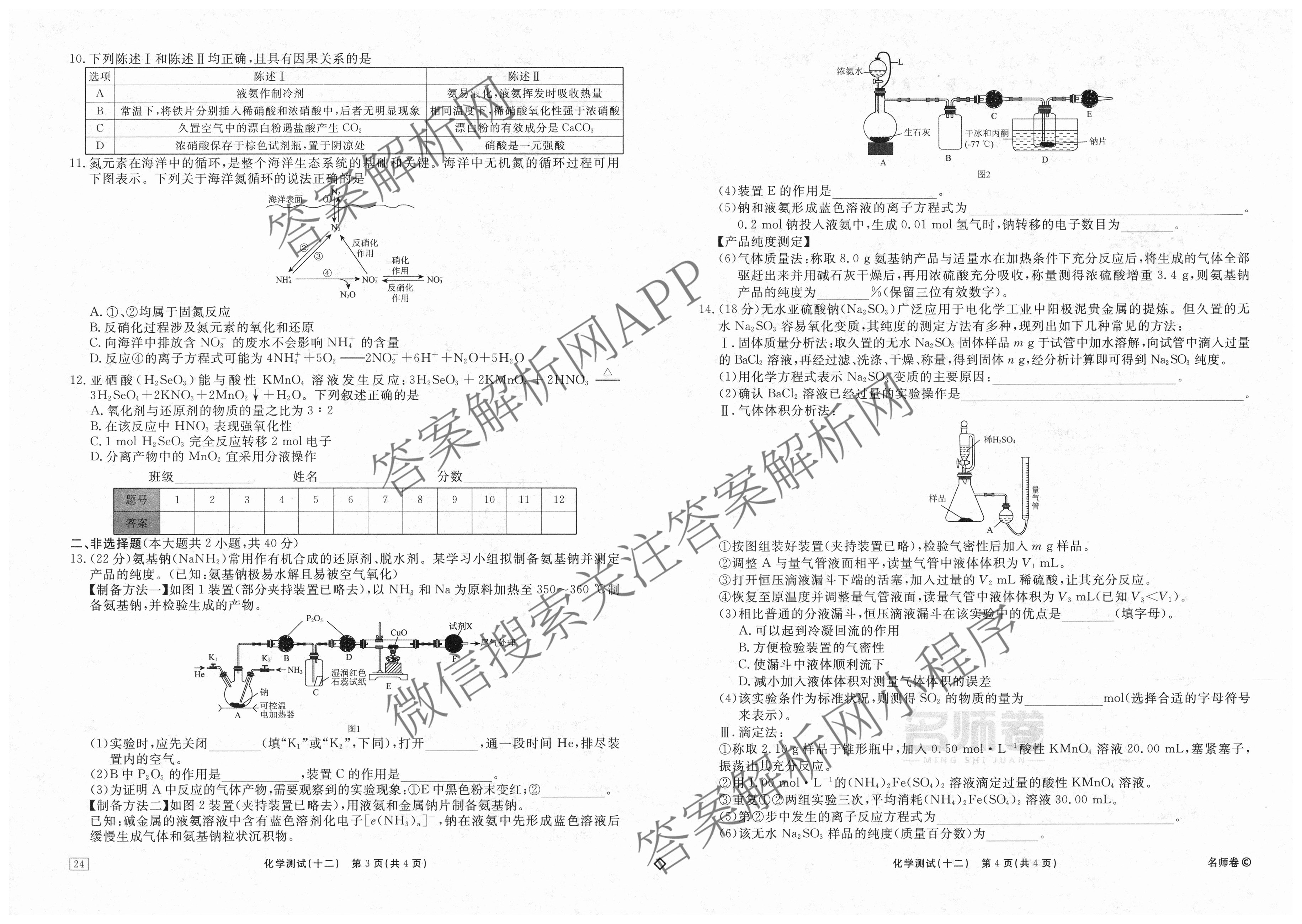 衡水名师卷2025-2026学年度高三一轮复习考点测试卷(十二)12化学(40分钟·空心菱形)试题,目前分科卷答案网已经汇总了衡水名师卷2025-2026学年度高三一轮复习考点测试卷(十二)12化学(40分钟·空心菱形)试题的各科答案和试卷,获取更多衡水名师卷答案解析,请在关注本站。
