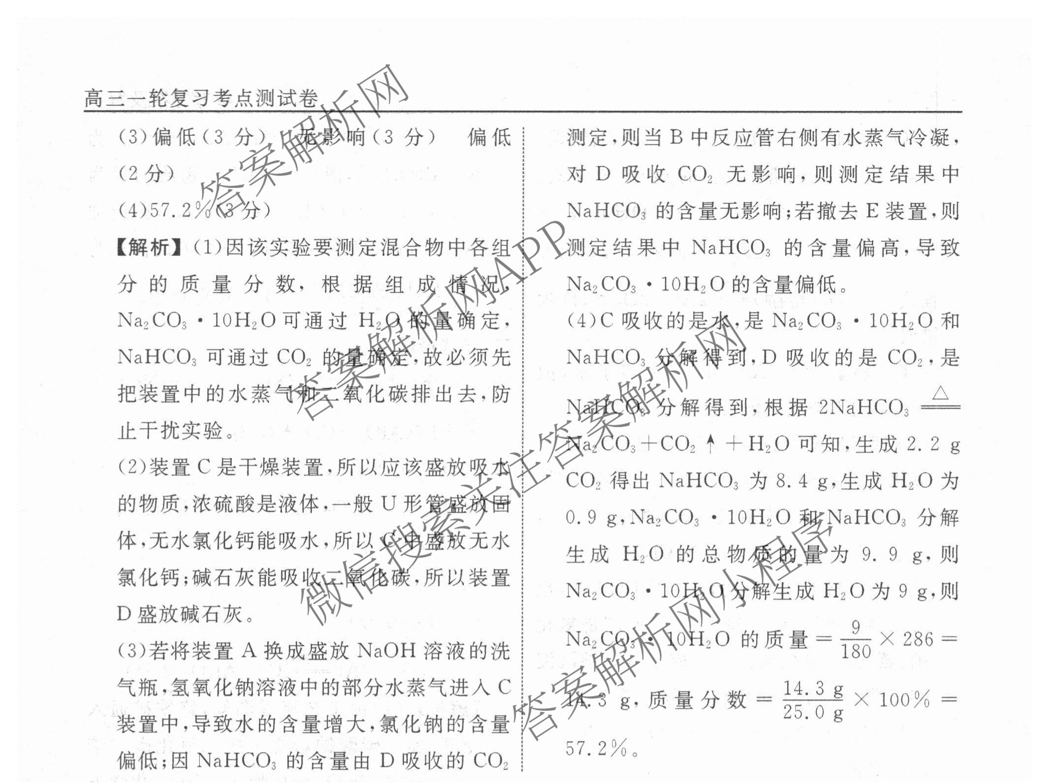 衡水名师卷2025-2026学年度高三一轮复习考点测试卷(四)4化学(40分钟空心菱形)答案