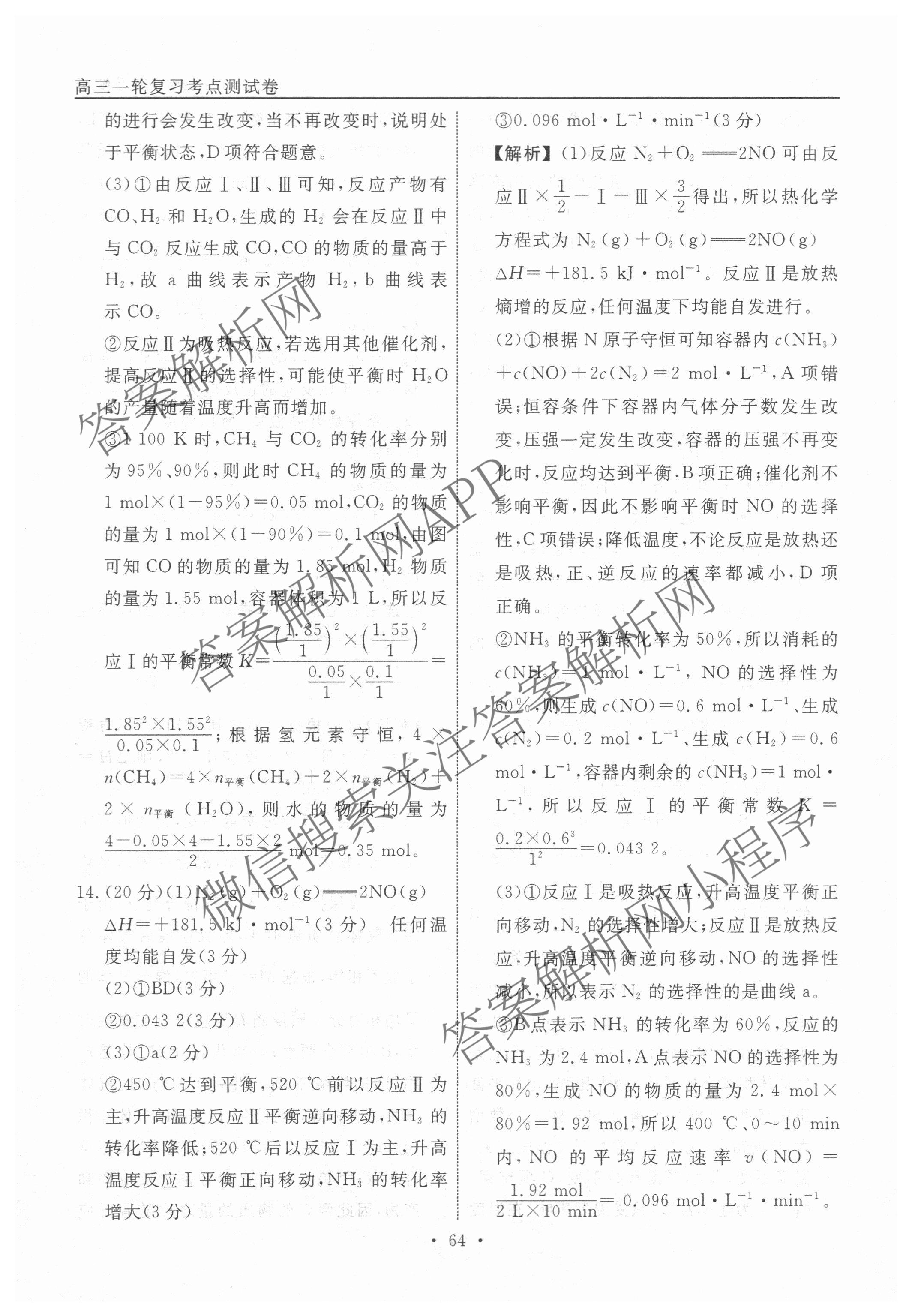 衡水名师卷2025-2026学年度高三一轮复习考点测试卷(二十二)22化学(40分钟空心菱形)答案