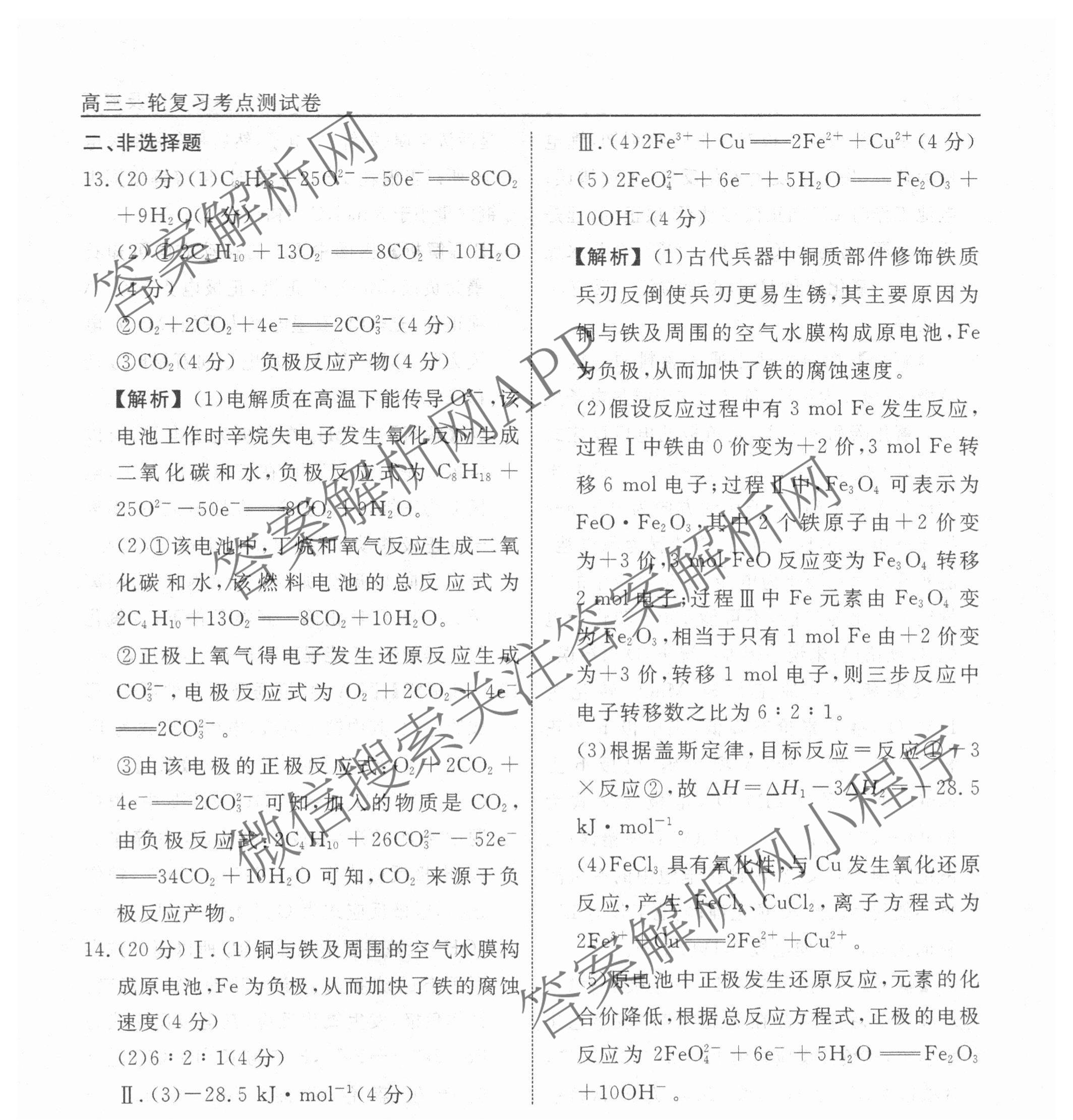 衡水名师卷2025-2026学年度高三一轮复习考点测试卷(十八)18化学(40分钟空心菱形)答案