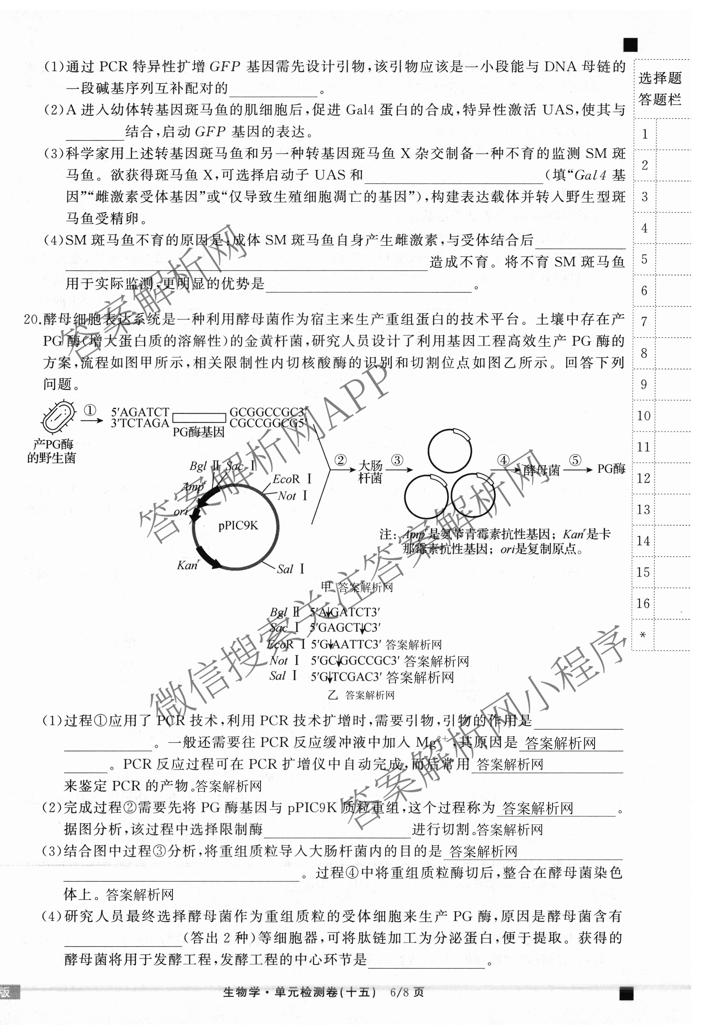 - (高三)天舟高考(衡中同卷)2025-2026学年度复习单元检测卷(十五)15生物(G专版)答案