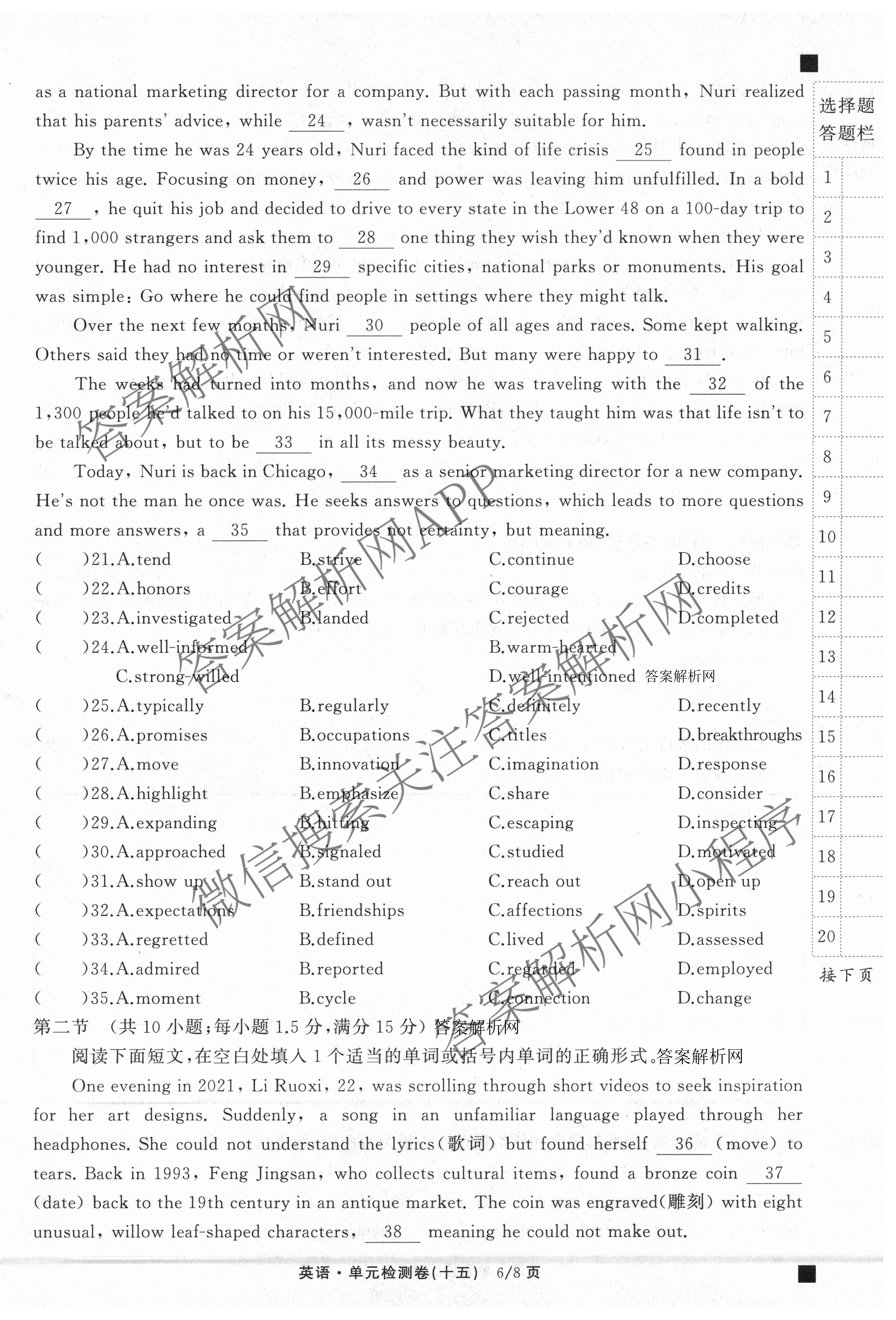 天舟高考衡中同卷·2025-2026学年度高三复习单元检测卷(十五)15英语(BSD)试题,目前分科卷答案网已经汇总了天舟高考衡中同卷·2025-2026学年度高三复习单元检测卷(十五)15英语(BSD)试题的各科答案和试卷,获取更多衡中同卷答案解析,请在关注本站。