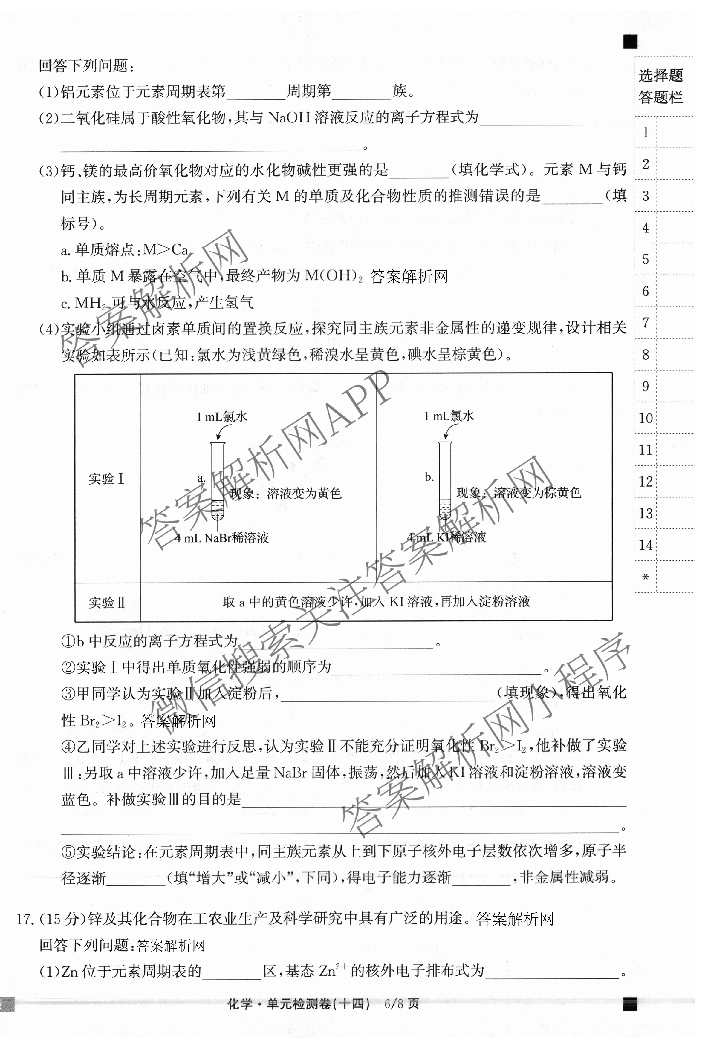 天舟高考衡中同卷·2025-2026学年度高三复习单元检测卷(十四)14化学(J专版)试题,目前分科卷答案网已经汇总了天舟高考衡中同卷·2025-2026学年度高三复习单元检测卷(十四)14化学(J专版)试题的各科答案和试卷,获取更多衡中同卷答案解析,请在关注本站。