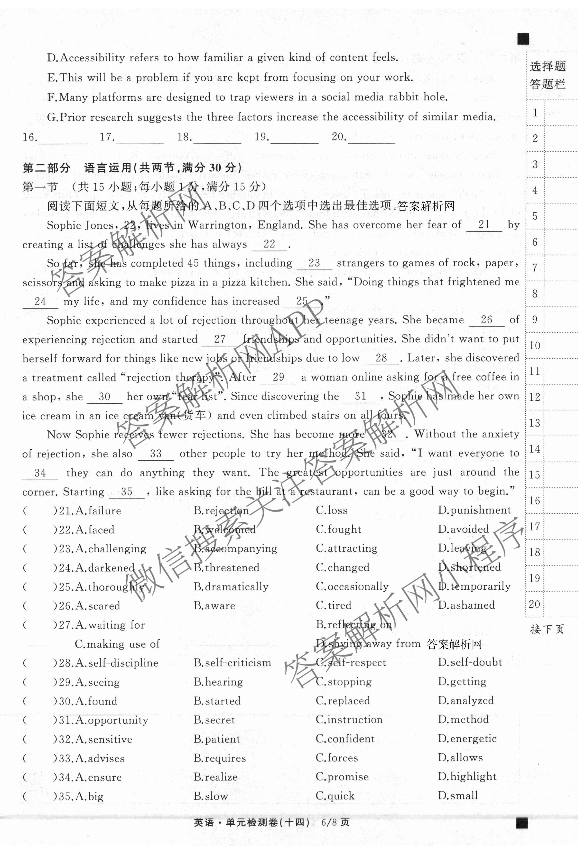 天舟高考衡中同卷·2025-2026学年度高三复习单元检测卷(十四)14英语(BSD)试题,目前分科卷答案网已经汇总了天舟高考衡中同卷·2025-2026学年度高三复习单元检测卷(十四)14英语(BSD)试题的各科答案和试卷,获取更多衡中同卷答案解析,请在关注本站。
