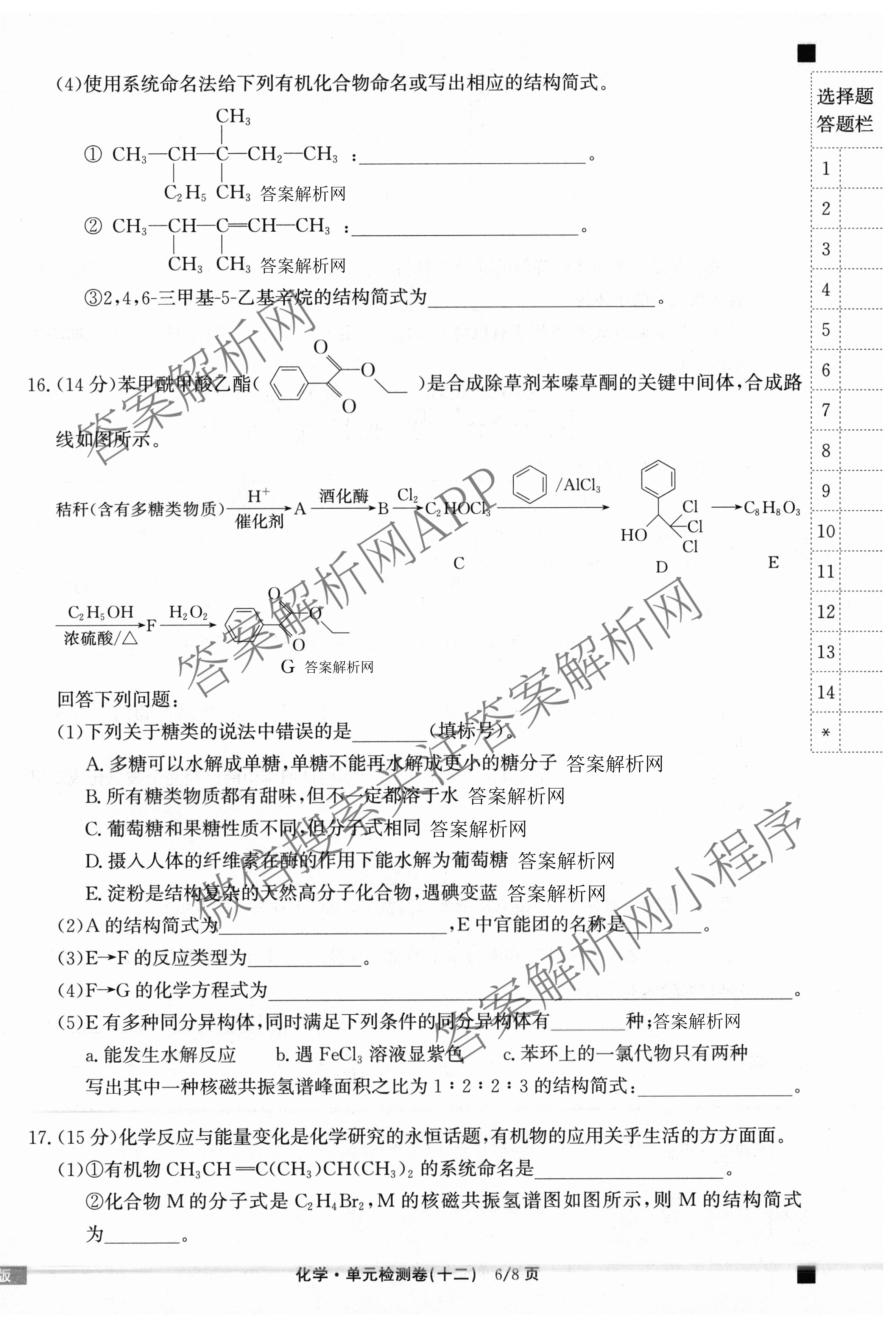 天舟高考衡中同卷·2025-2026学年度高三复习单元检测卷(十二)12化学(J专版)试题,目前分科卷答案网已经汇总了天舟高考衡中同卷·2025-2026学年度高三复习单元检测卷(十二)12化学(J专版)试题的各科答案和试卷,获取更多衡中同卷答案解析,请在关注本站。