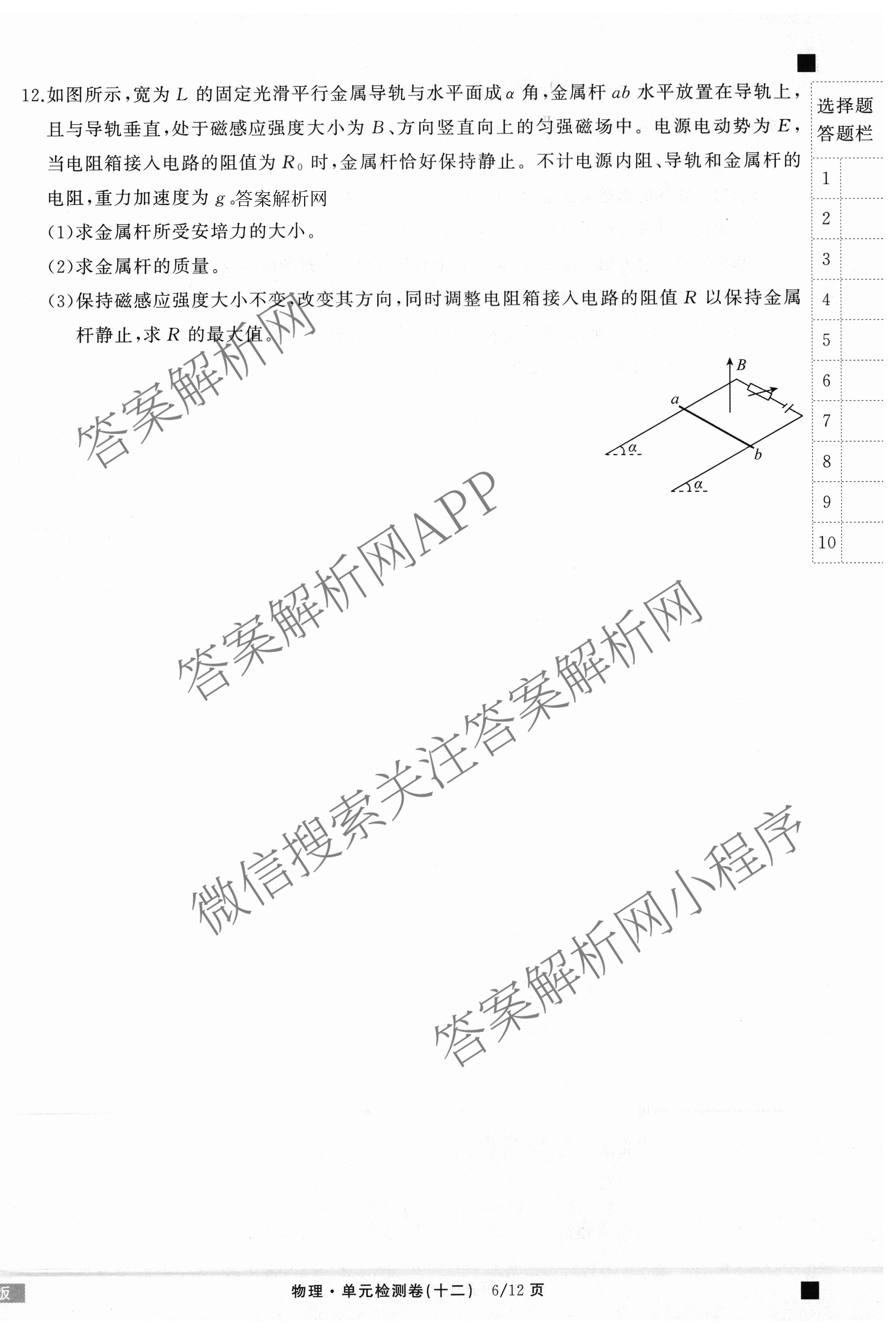 天舟高考衡中同卷·2025-2026学年度高三复习单元检测卷(十二)12物理(L专版)试题,目前分科卷答案网已经汇总了天舟高考衡中同卷·2025-2026学年度高三复习单元检测卷(十二)12物理(L专版)试题的各科答案和试卷,获取更多衡中同卷答案解析,请在关注本站。