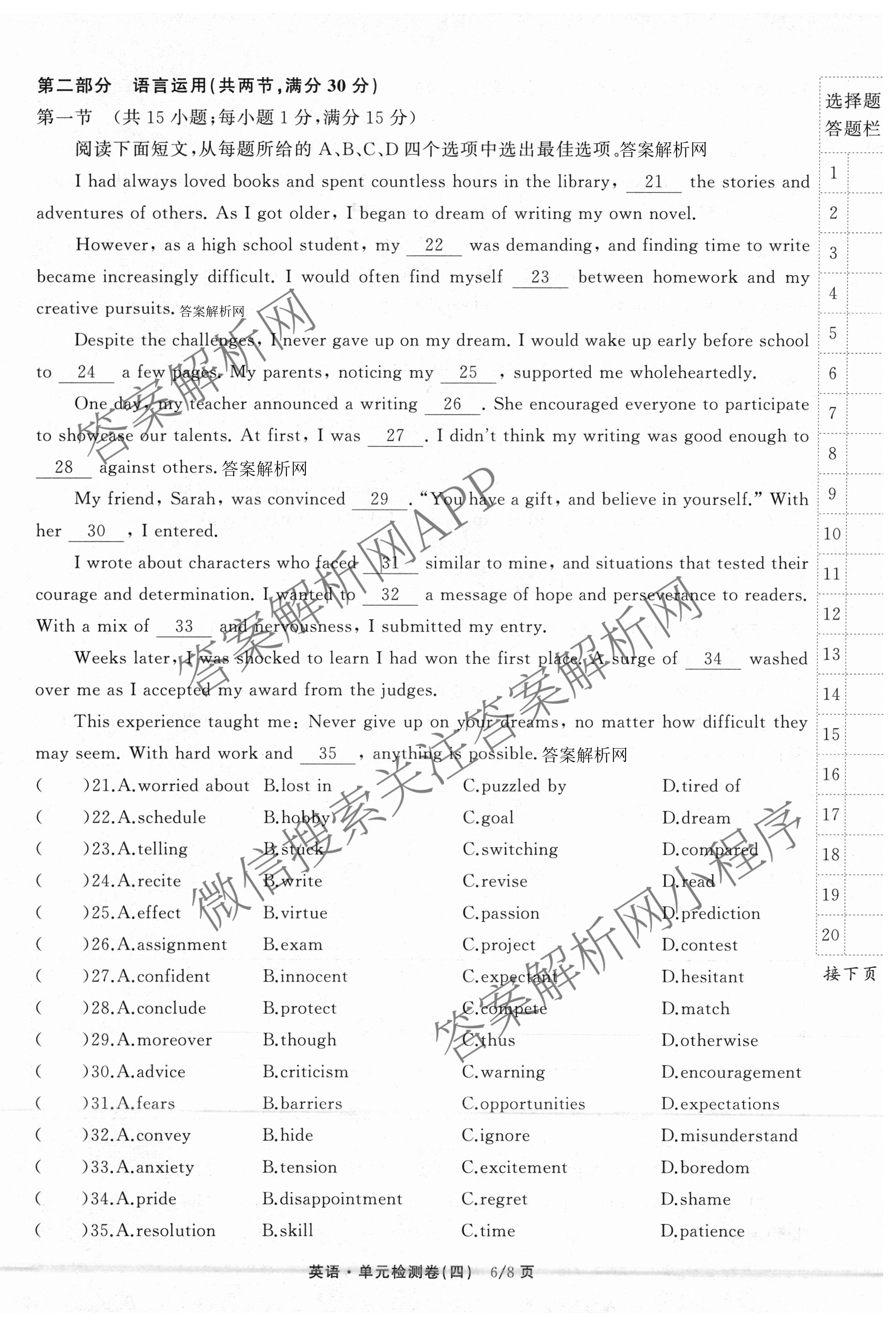 天舟高考衡中同卷·2025-2026学年度高三复习单元检测卷(四)4英语(BSD)试题,目前分科卷答案网已经汇总了天舟高考衡中同卷·2025-2026学年度高三复习单元检测卷(四)4英语(BSD)试题的各科答案和试卷,获取更多衡中同卷答案解析,请在关注本站。