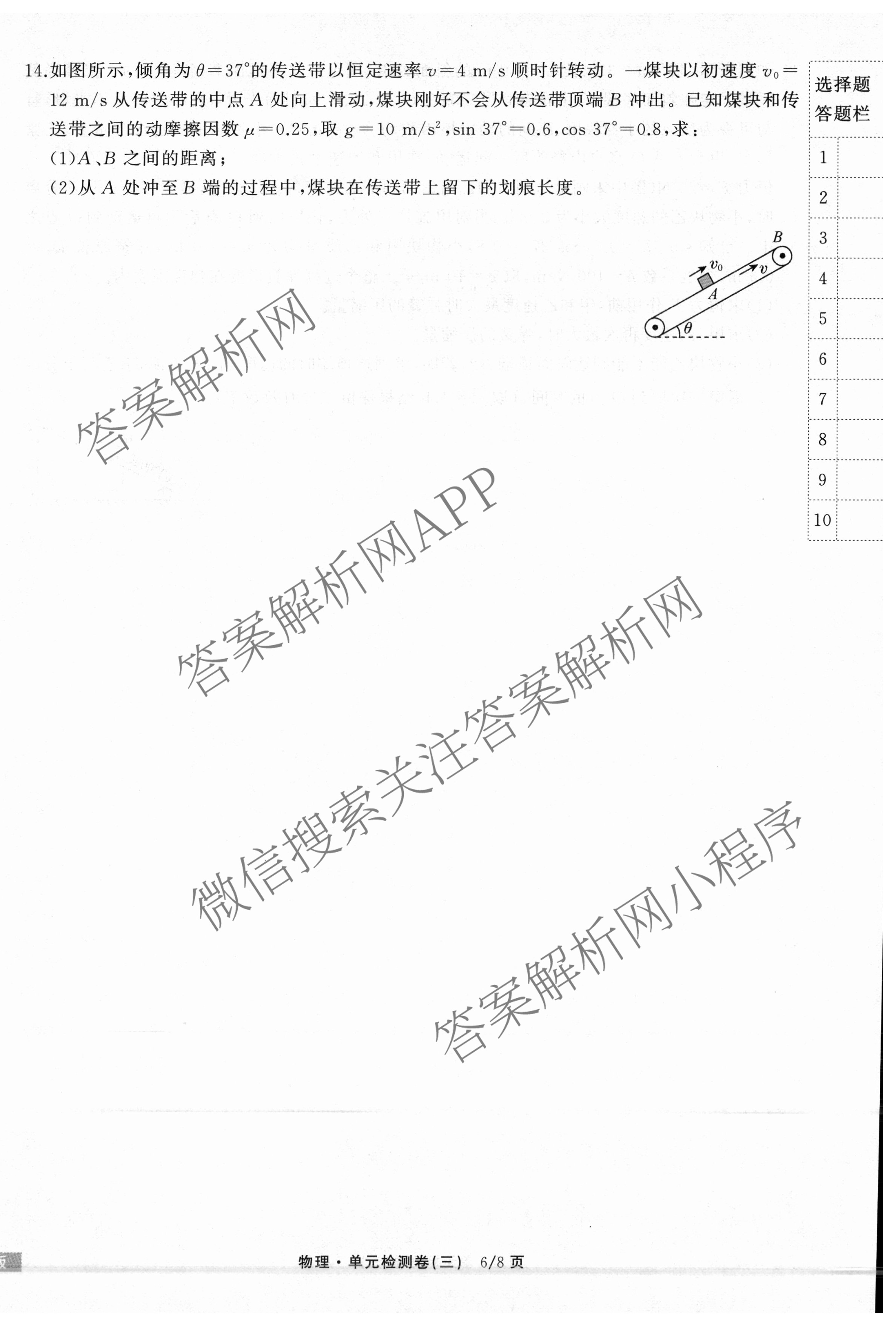 天舟高考衡中同卷·2025-2026学年度高三复习单元检测卷(三)3物理(L专版)试题,目前分科卷答案网已经汇总了天舟高考衡中同卷·2025-2026学年度高三复习单元检测卷(三)3物理(L专版)试题的各科答案和试卷,获取更多衡中同卷答案解析,请在关注本站。