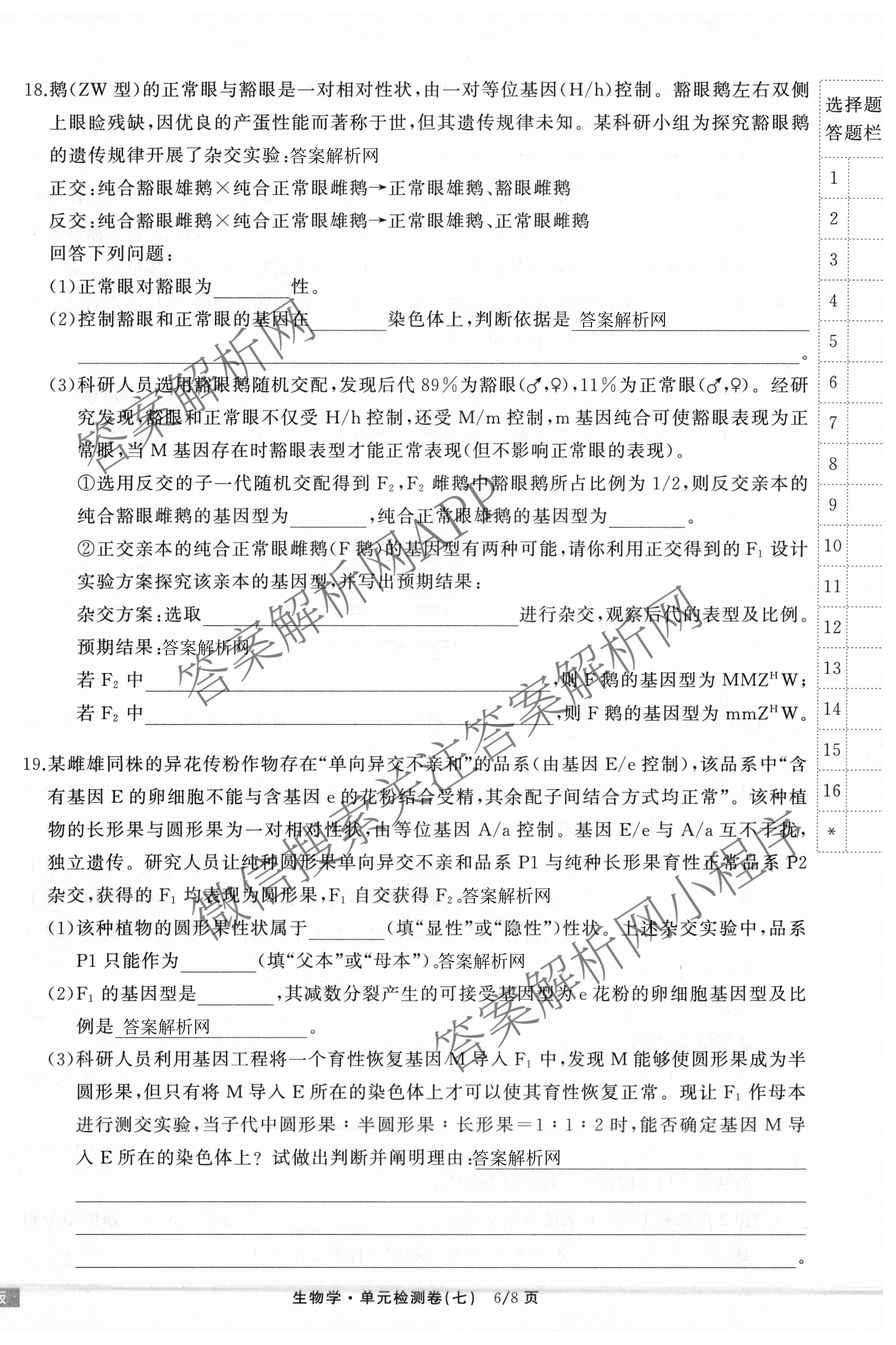 天舟高考衡中同卷·2025-2026学年度高三复习单元检测卷(七)7生物(G专版)试题,目前分科卷答案网已经汇总了天舟高考衡中同卷·2025-2026学年度高三复习单元检测卷(七)7生物(G专版)试题的各科答案和试卷,获取更多衡中同卷答案解析,请在关注本站。