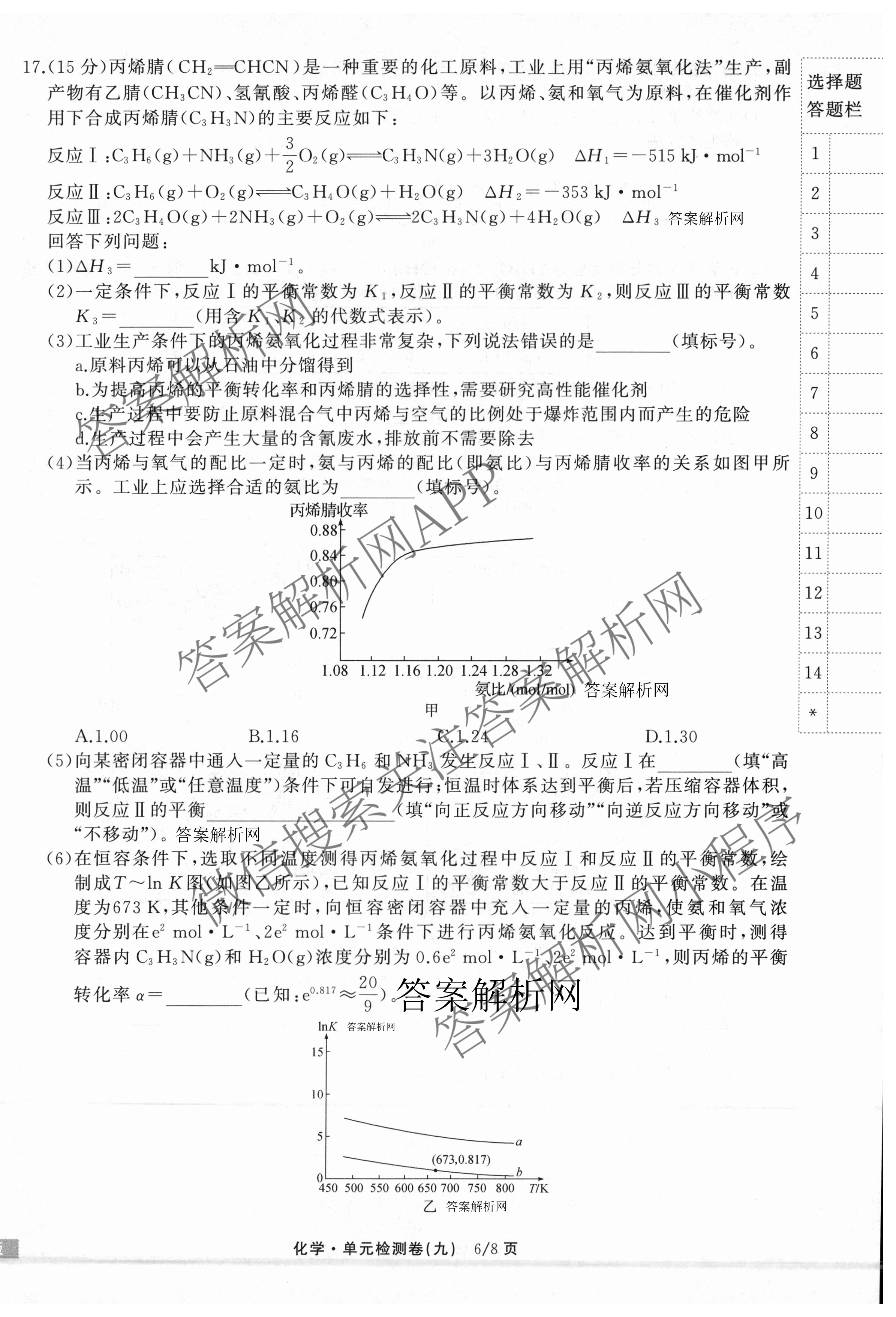 天舟高考衡中同卷·2025-2026学年度高三复习单元检测卷(九)9化学(J专版)试题,目前分科卷答案网已经汇总了天舟高考衡中同卷·2025-2026学年度高三复习单元检测卷(九)9化学(J专版)试题的各科答案和试卷,获取更多衡中同卷答案解析,请在关注本站。
