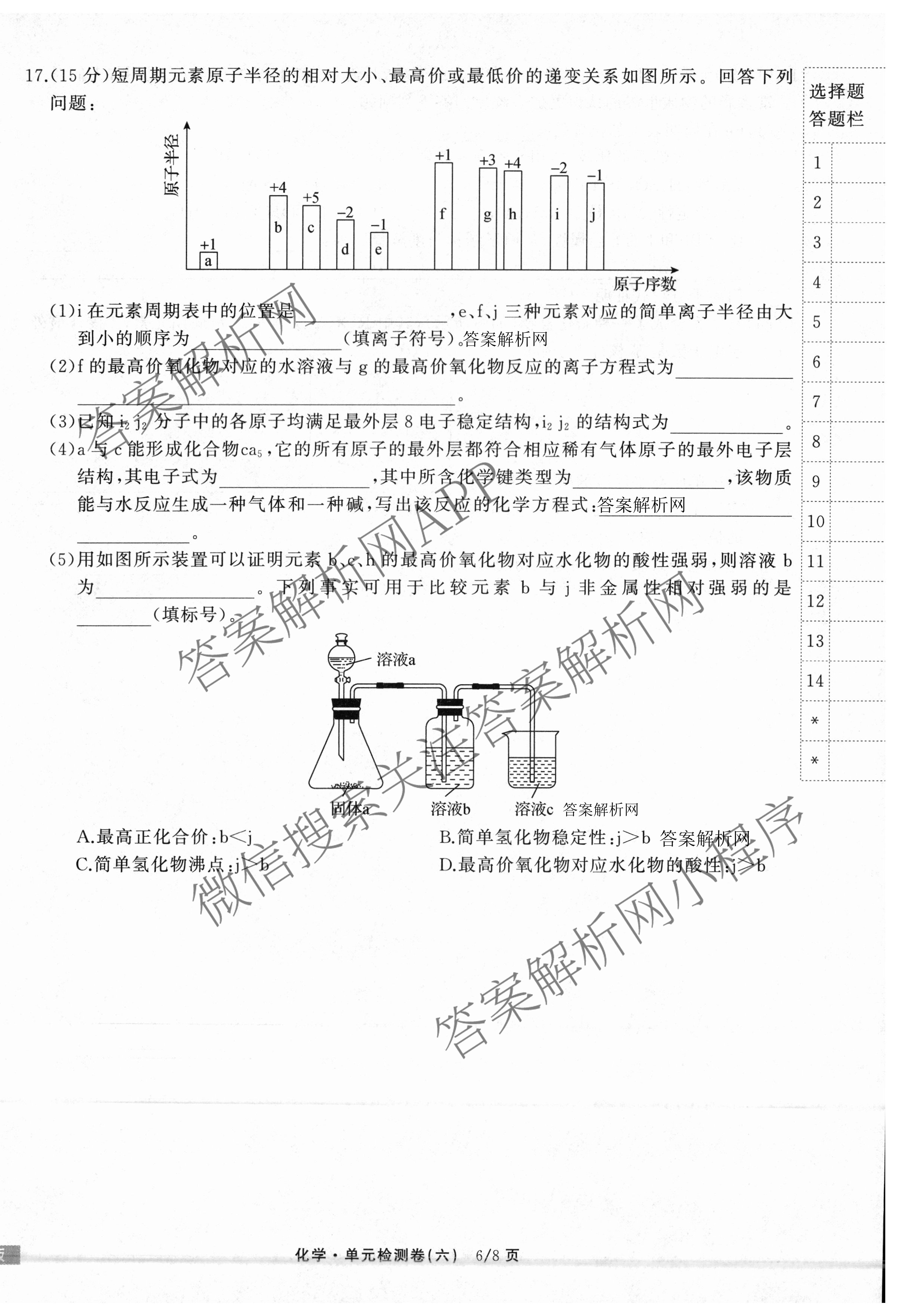 天舟高考衡中同卷·2025-2026学年度高三复习单元检测卷(六)6化学(J专版)试题,目前分科卷答案网已经汇总了天舟高考衡中同卷·2025-2026学年度高三复习单元检测卷(六)6化学(J专版)试题的各科答案和试卷,获取更多衡中同卷答案解析,请在关注本站。