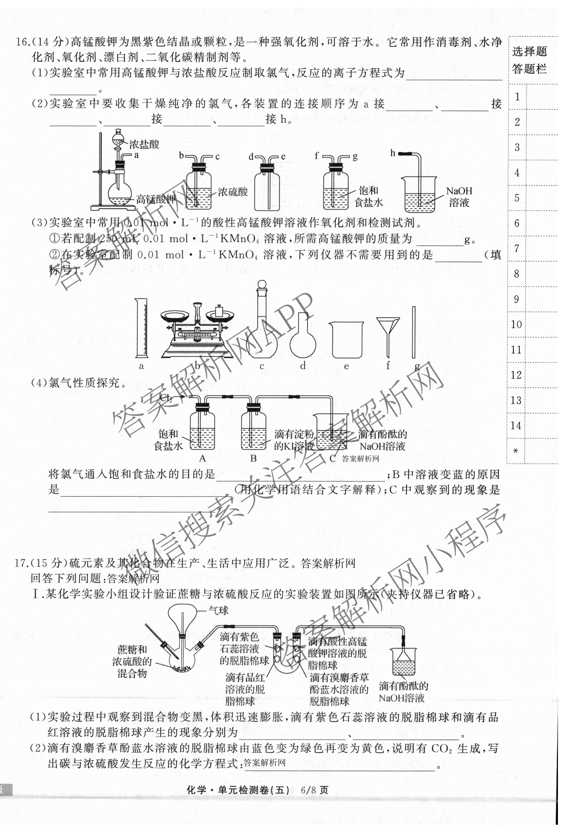 天舟高考衡中同卷·2025-2026学年度高三复习单元检测卷(五)5化学(J专版)试题,目前分科卷答案网已经汇总了天舟高考衡中同卷·2025-2026学年度高三复习单元检测卷(五)5化学(J专版)试题的各科答案和试卷,获取更多衡中同卷答案解析,请在关注本站。